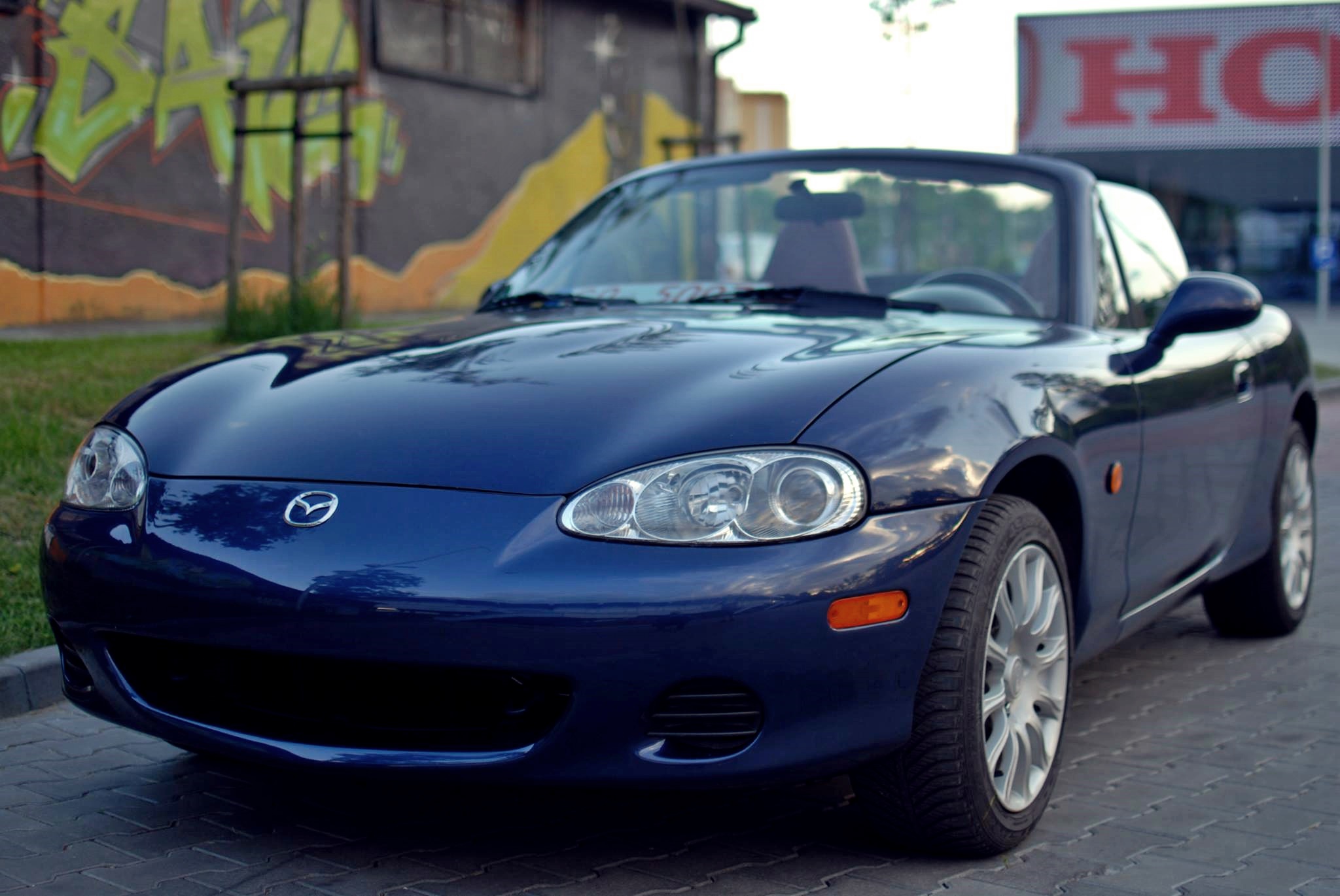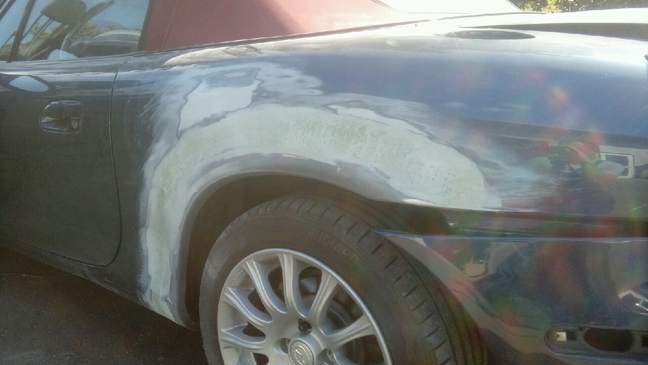 Po 323f BA przyszedł czas na MX5 za namową pewnego jegomościa z królestwa Fordonu. Wybór padł na MX5 NBFL z 2002 roku od Niemca (który jeździł trochę więcej niż tylko w niedzielę do kościoła). Przebieg przy kupnie to 108330 km, wygląda na oryginalny – silnik, skrzynia, napędy – wszystko suche jak pieprz (na zewnątrz tylko, wewnątrz jakieś płyny ustrojowe są), nie dymi, nie bierze oleju, nie szarpie. Samochód w sumie kupiony w ciemno, na telefon, przyjechał na lawecie. Po przyjeździe okazało się że jest trochę więcej do zrobienia z blacharki niż to co było widoczne na zdjęciach.