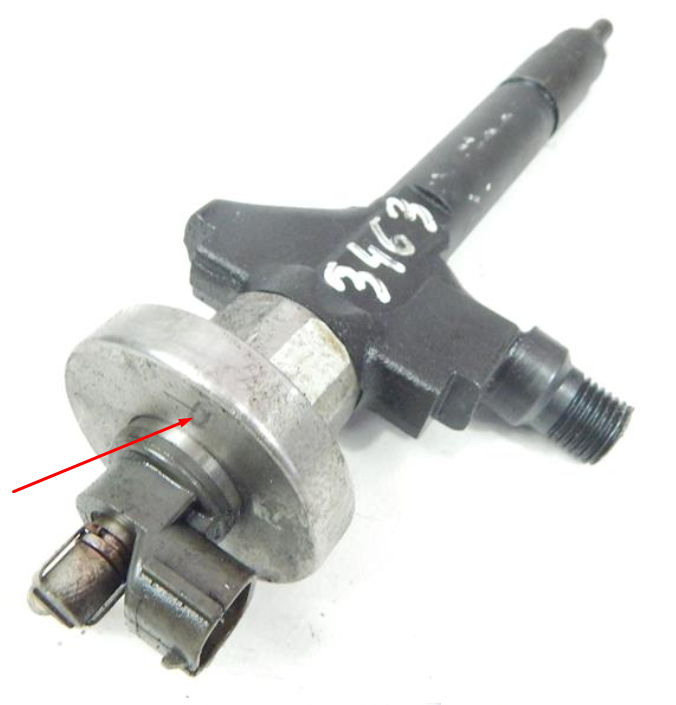 W silniku RF5C 121KM kody korekcyjne w programie FosCan pokrywają się z tym co jest wygrawerowane na górze wtryskiwacza, tutaj w miejsu, gdzie wskazuje strzałka: