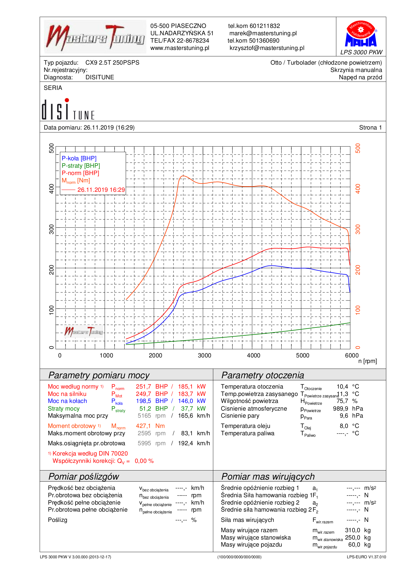 Zmierzone parametry seryjne 252KM 427Nm