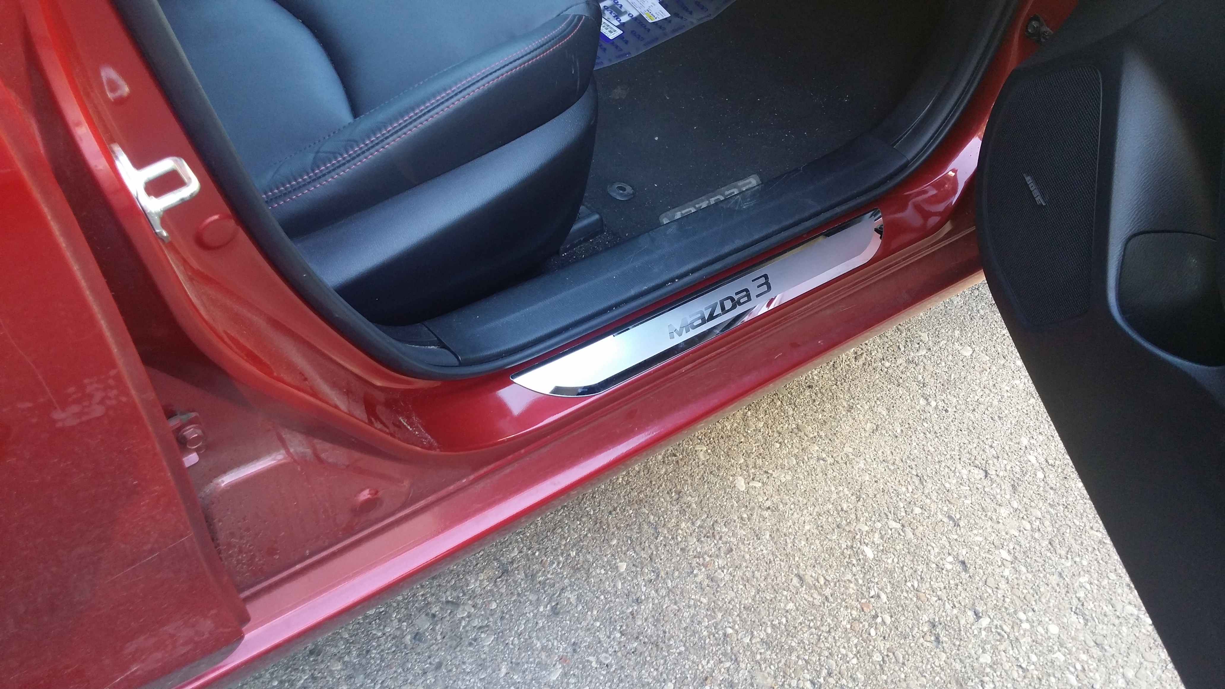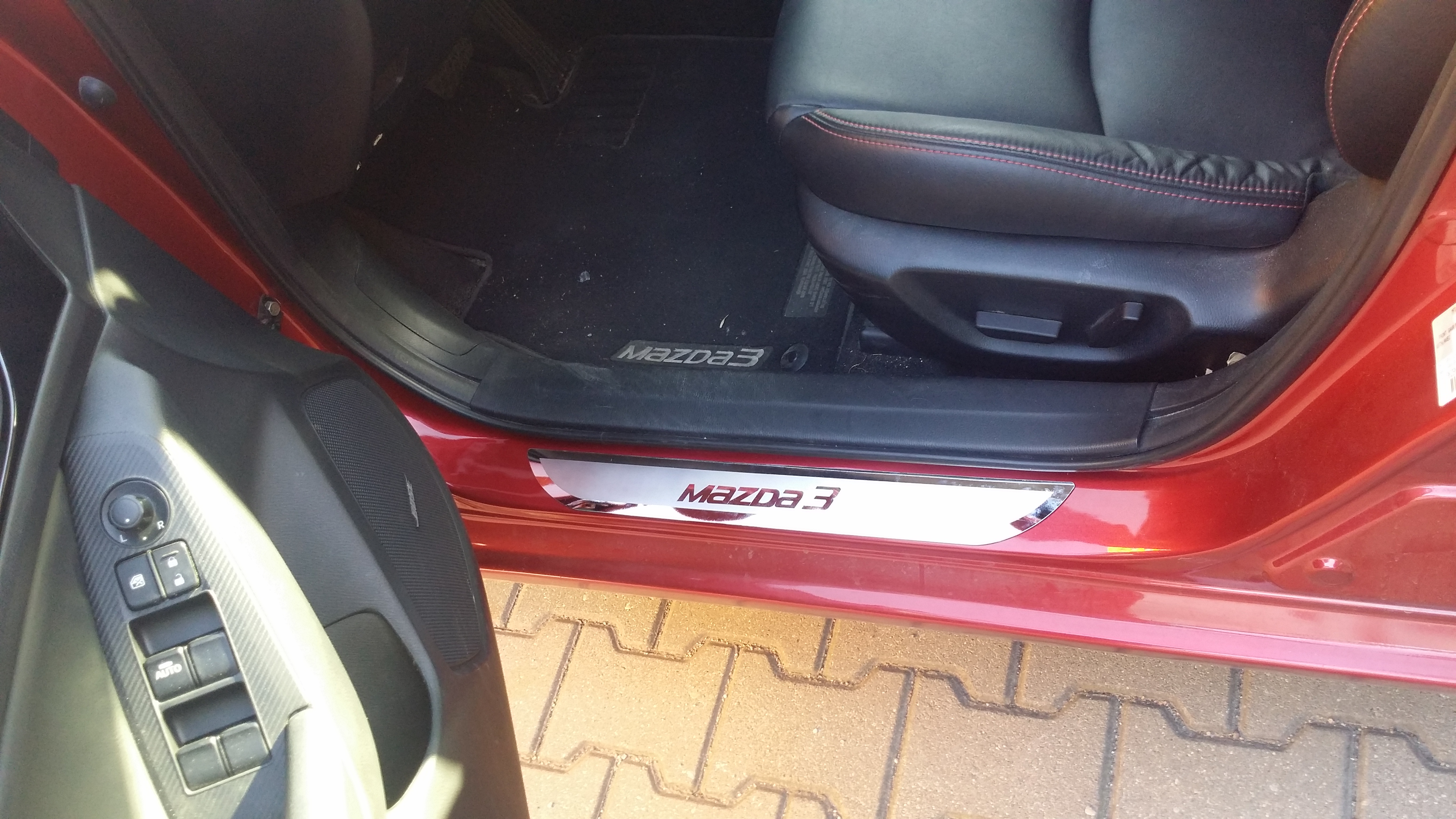 Jako że progi w naszych Mazdach są takie jakby gołe postanowiłem zamówić metalowe nakładki na progi za niecałe 80 złociszy. Myślę, że za taką niewygórowaną kwotę poprawiło to wygląd, przynajmniej tak mi się wydaję