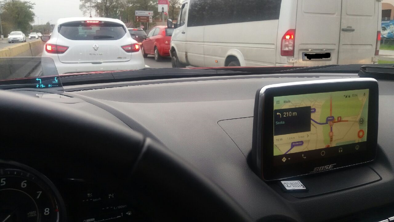 Dzisiaj pojawiły mi się wskazówki nawigacji na HUD. Używałem AA (nieoficjalny) z Waze.