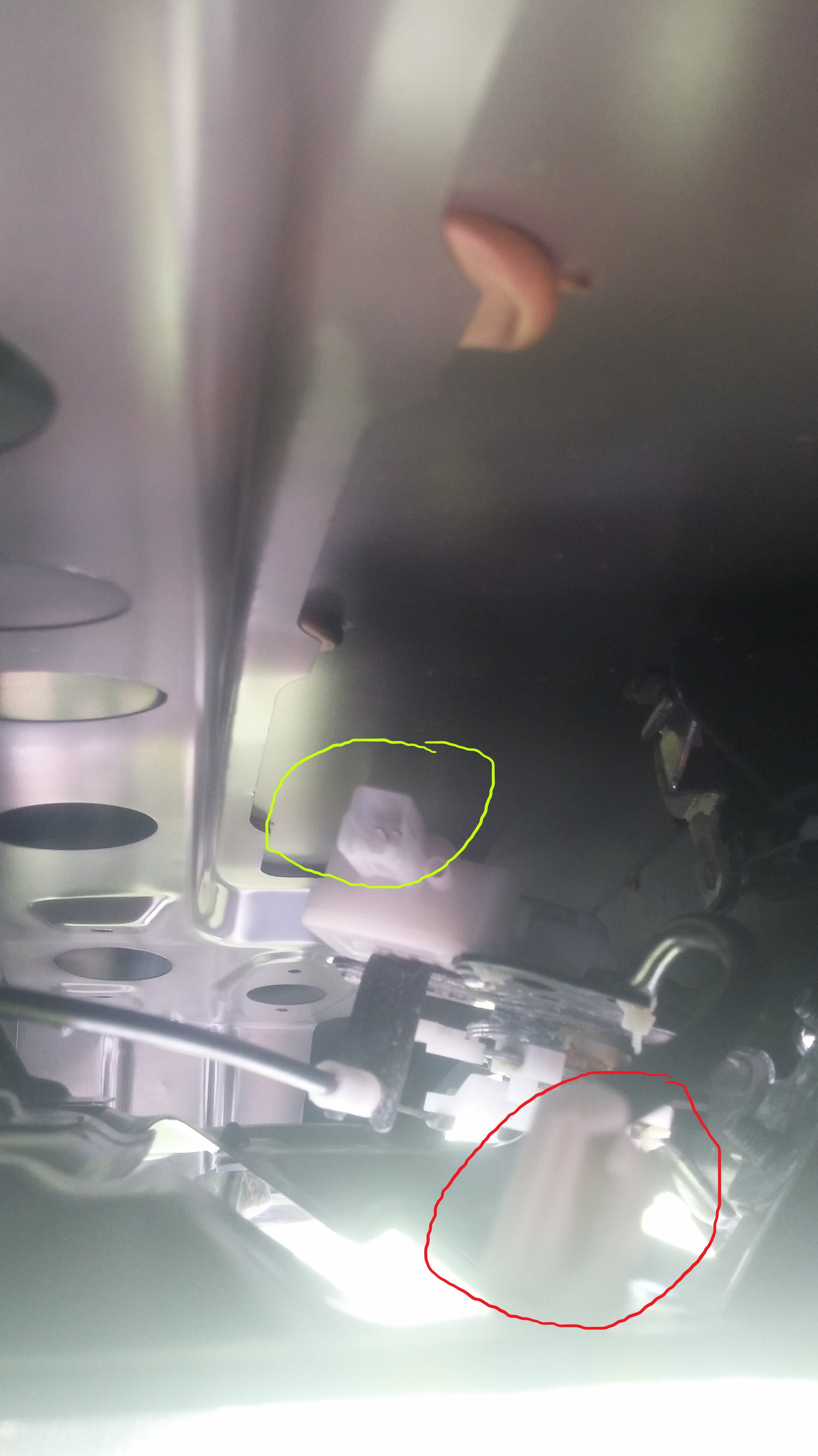 Niestety po 24h moczenia w rozpuszczalniku, smar wyczyszczony ale nic się nie zmieniło dalej nie zapala się lampka otwartych drzwi i prądu w żarówce dalej nie ma. Bardzo by mi pomogło czy na zielonej wtyczce powinien być prąd, bo w wtedy wiem gdzie szukać. Jest ktoś w stanie pomóc?