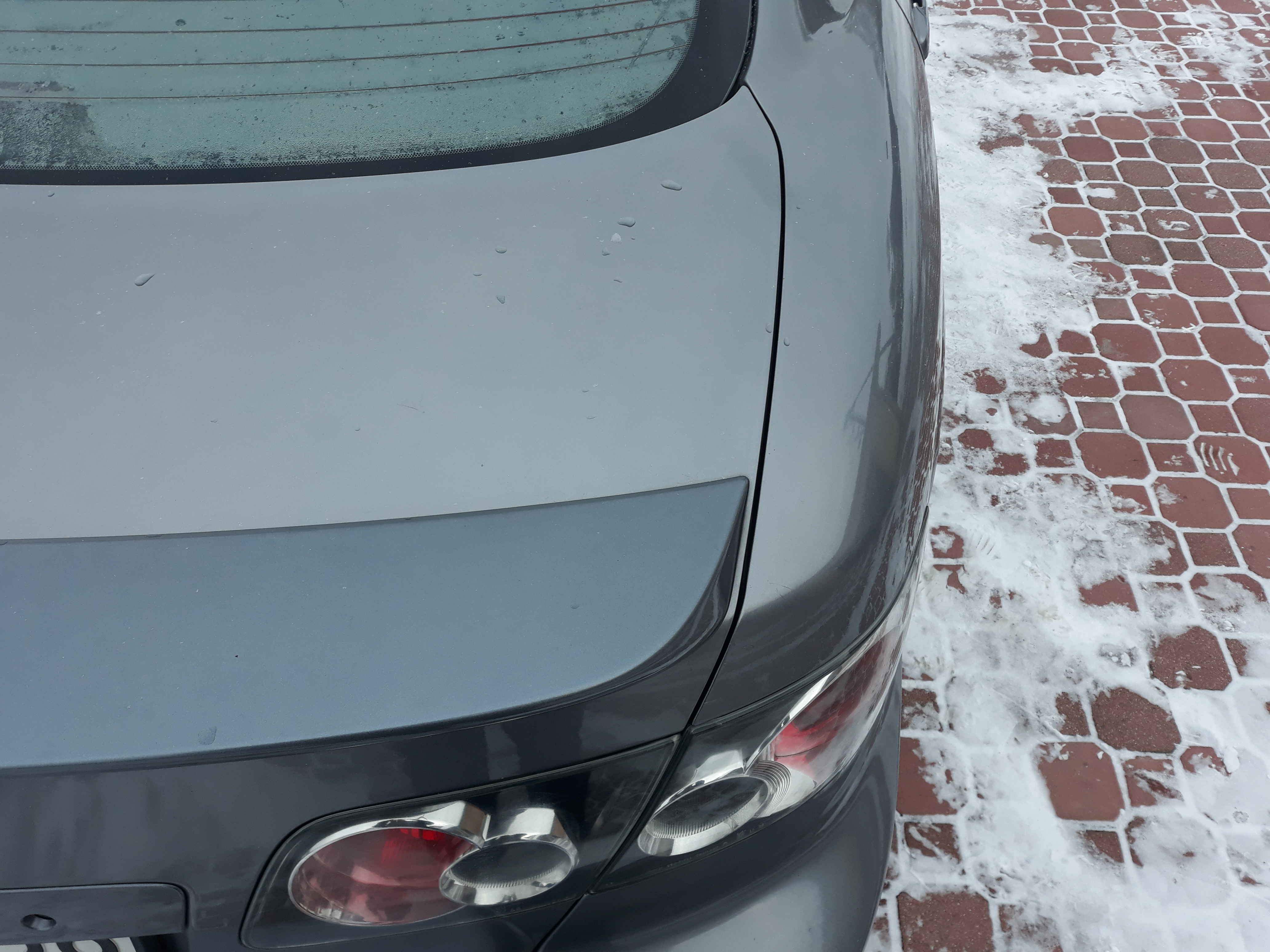 A co do lotki nie przykleili z braku czasu, ale też ze względu na pogodę, bo najlepiej zrobić to jak będzie ciepło i sucho. Ja niestety mam za mały garaż, dlatego trzymam samochód na dworze, a to słabe warunki na schnięcie kleju. Po dokładnej przymiarce jednak tak idealnie nie jest. Na samym środku trzeba by ją solidnie czymś docisnąć przy montażu bo odstaje, ale najgorsze jest że po bokach trochę nachodzi na przerwę między błotnikami a klapą bagażnika ;/