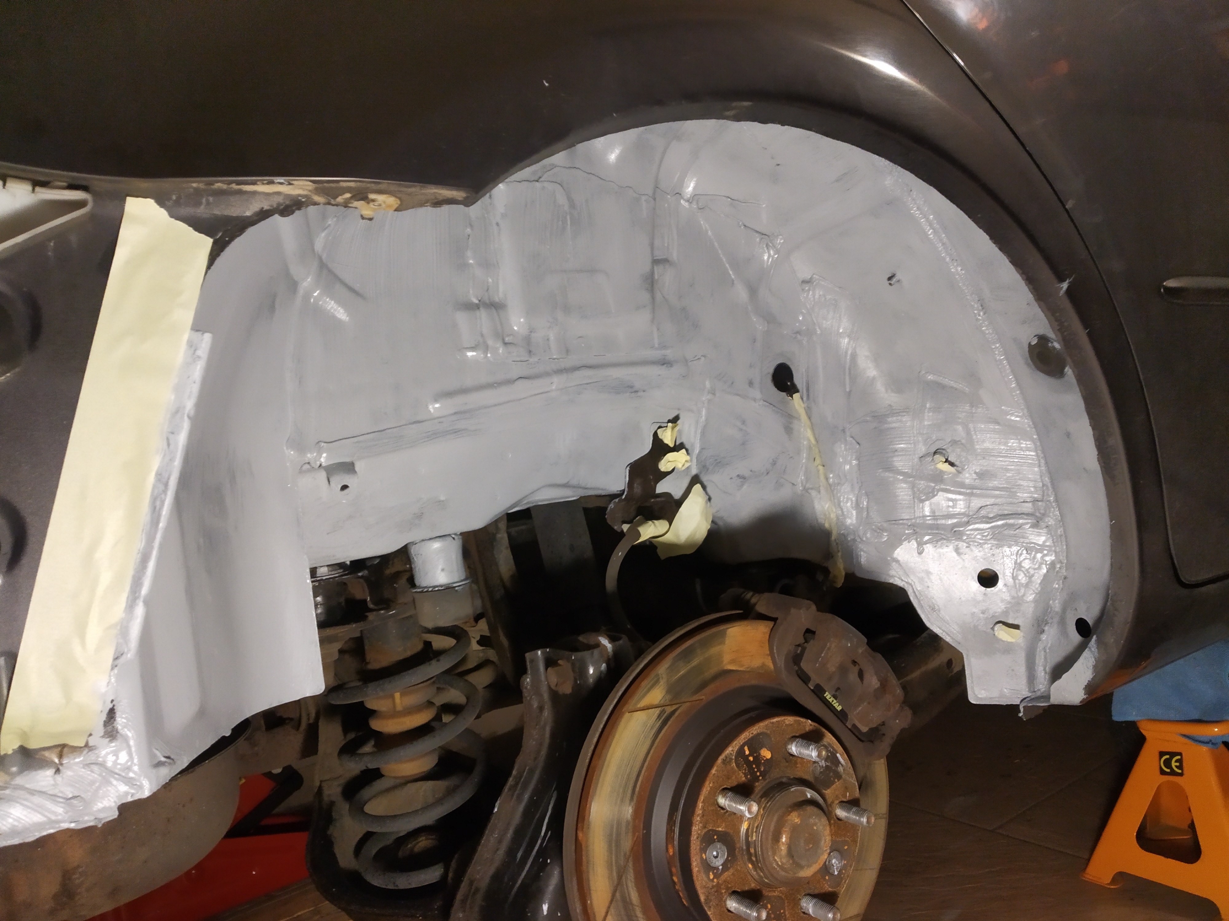 Cały czas nie mogę się jednak zdecydować – czy montować na to plastikowe nadkola (które już leżą w piwnicy), czy jednak dać sobie spokój i wrzucić ponownie standardowe. Z plastikiem jest ten problem, że nie ma wszystkich otworów (co idzie w kilka minut poprawić), ale bardziej obawiam się tarcia plastiku o ranty nadkola. Hm. Jakieś rady?
