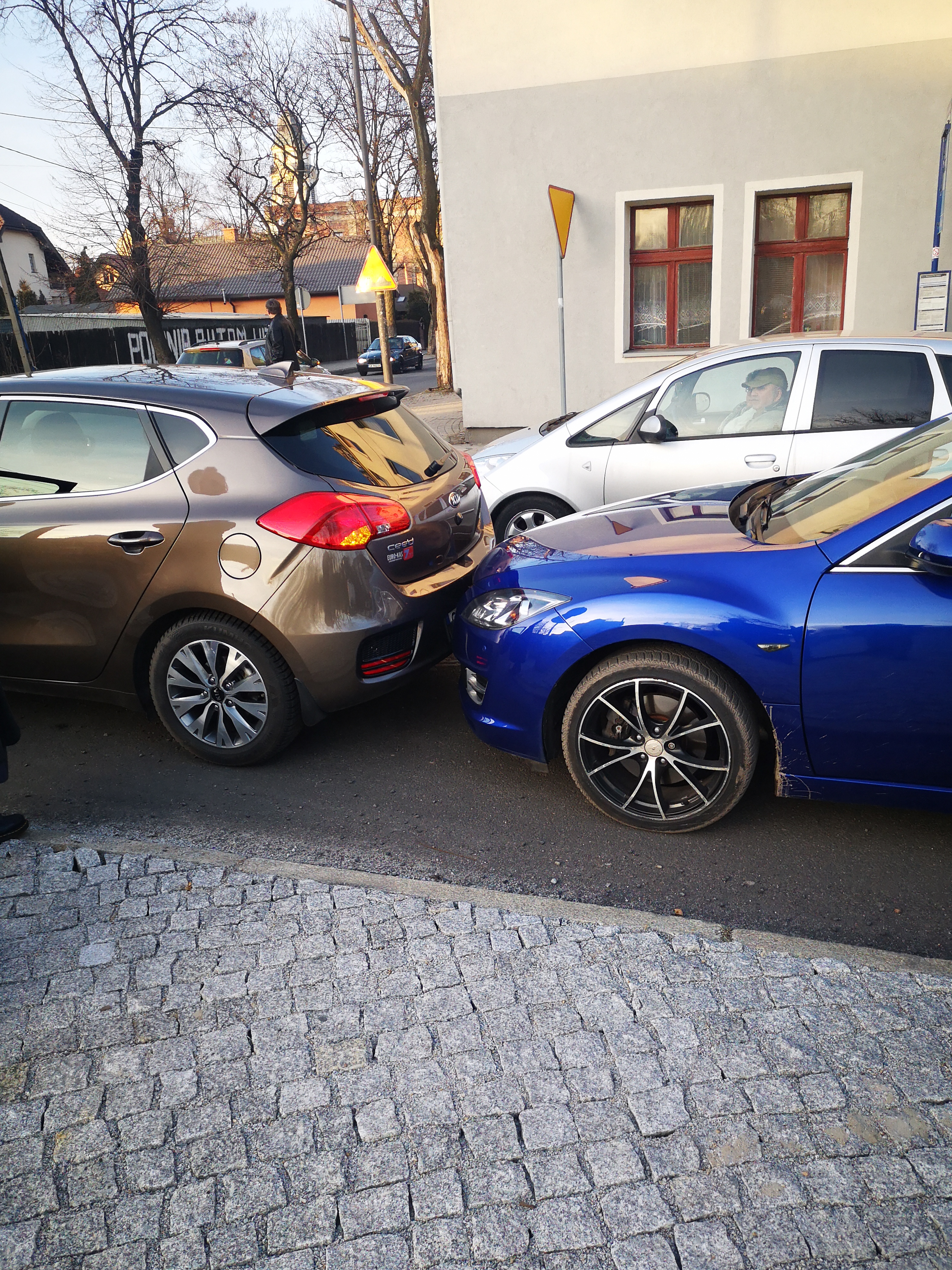 Tydzień później jak nigdy wyjechałem w poniedziałek autem z garażu i uprzejma Pani postanowiła stoczyć się z górki i zaparkować na mnie, jej szczęście że zareagowała na klakson i tylko się oparła nic nie uszkadzając nawet ramka z tablicy rej nie została porysowana więc powiedzmy że rozjechalismy bez zbędnych formalności