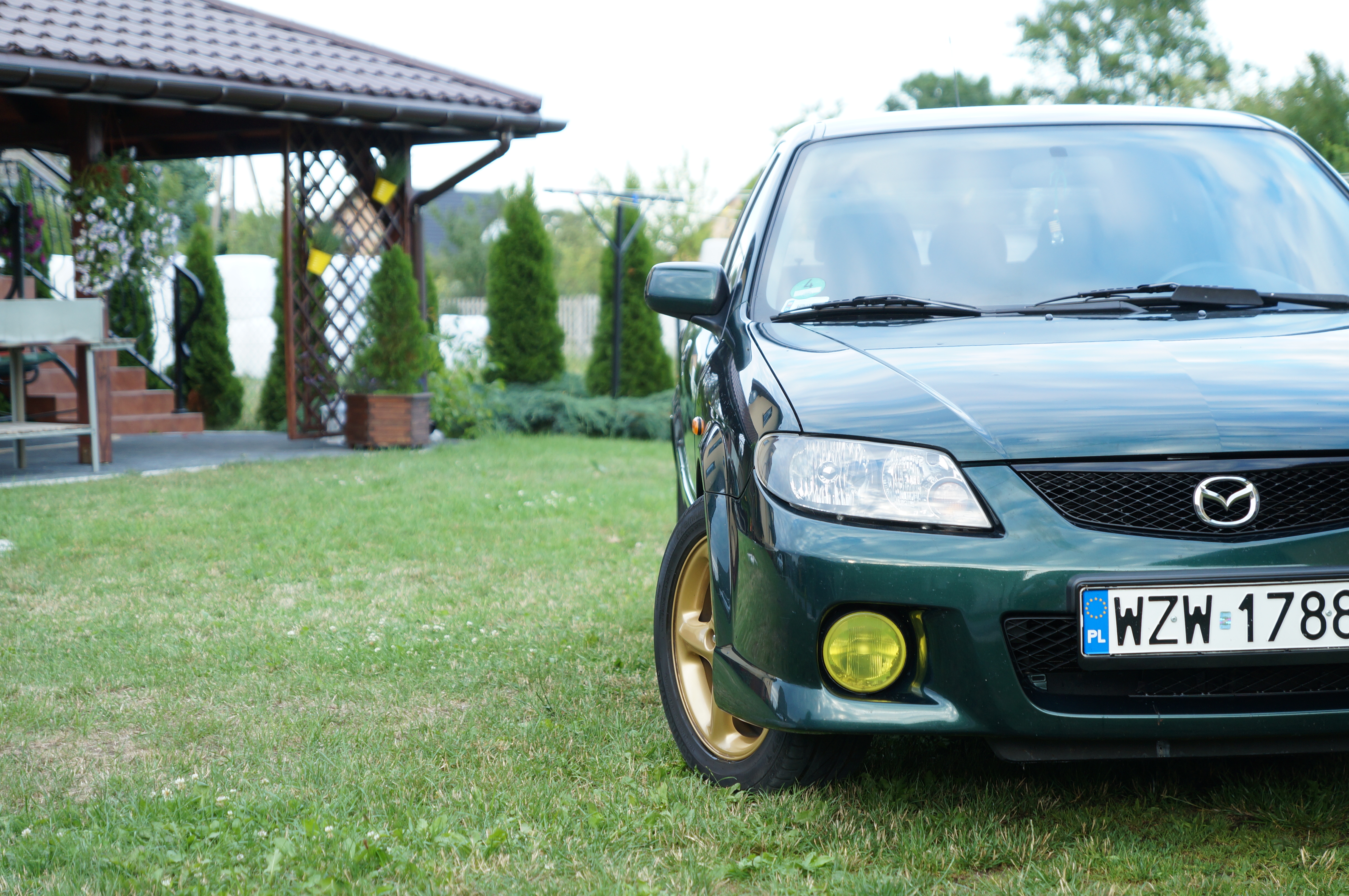 Zainteresowaniem do marki zaraził mnie kiedyś mój szwagier, więc kiedy przyszło kupić pierwszy samochód wybór był prosty – musi być mazda. :) Kiedy zacząłem się w tedy rozglądać i szukać odpowiedniego modelu, bardzo spodobała mi się wersja sportive modelu 323f BJ – niby prosty hatchback lecz inny niż wszystkie. Body kit od razu przypadł mi do gustu – halogeny ala subaru, dokładki na progi i tylny zderzak, większe felgi, pod maska przykuwająca uwagę rozpórka, we wnętrzu trójramienna kierownica nardi torino no i te białe zegary <serduszka> . Zacząłem więc poszukiwania, a łatwo nie było bo budżet był ograniczony. Na szczęście kiedy pojawiła się dobra sztuka kasą poratował mnie tata i tak oto sportive wylądował u mnie w garażu :D .