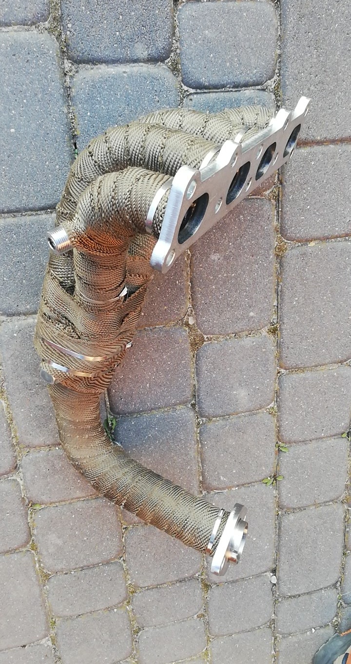 Mały przedsmak następnego modu, czyli kolektor wydechowy z kwasówki oczywiście bez kata, zakupiony od seba323f – pozdro :). Owinąłem go bandażem termicznym bazaltowym, podobno do 1400 stopni. Zobaczymy co z tego wyjdzie wygląda nawet nawet. <faja>