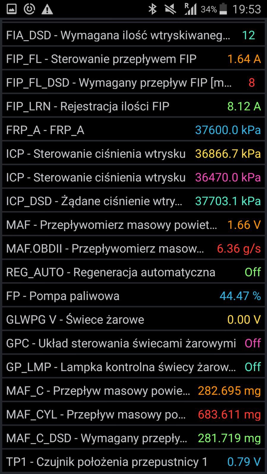 Forscan umożliwił mi podejrzenie kodów korekcyjnych wtrysków. Poniżej foto.