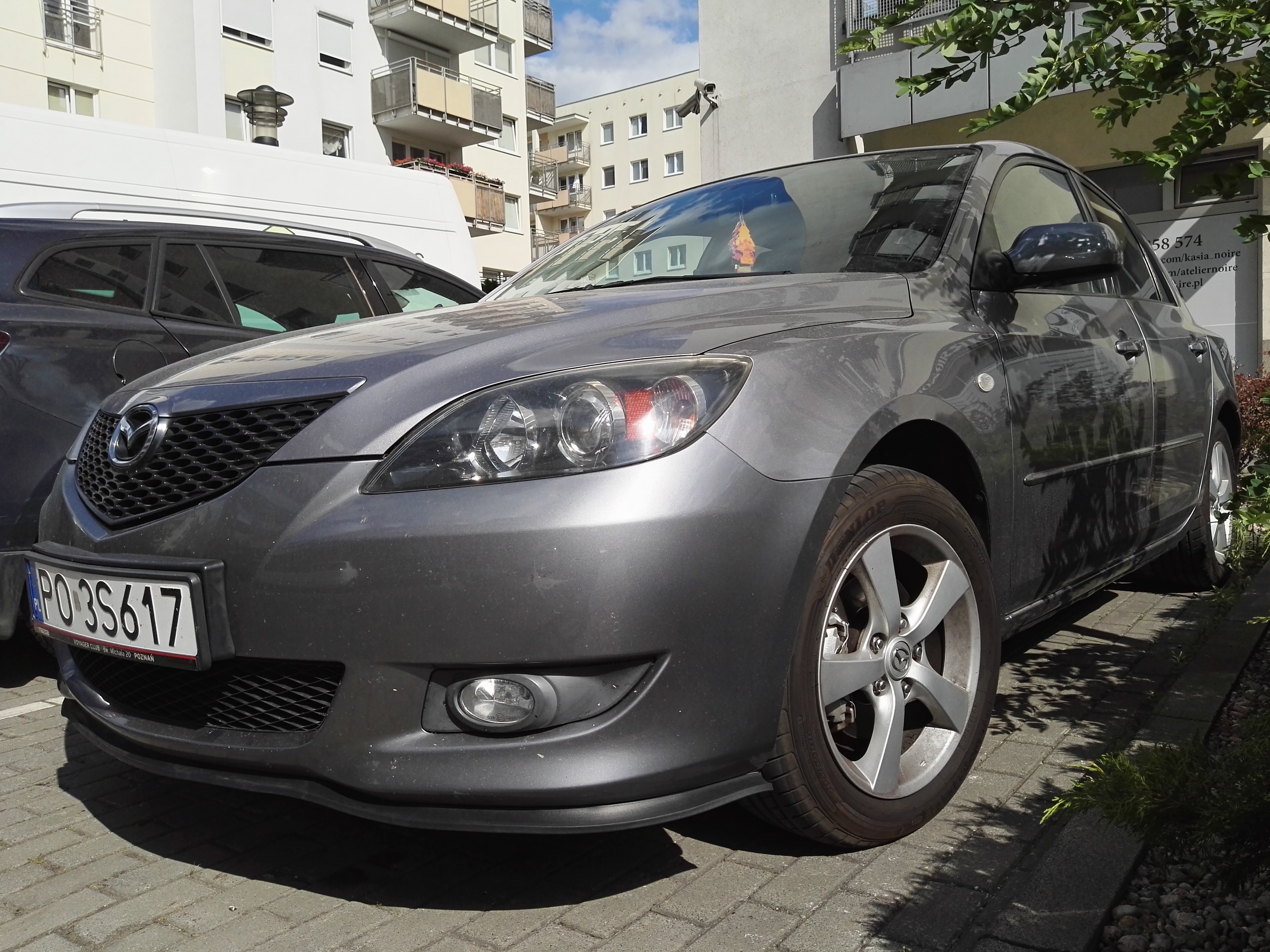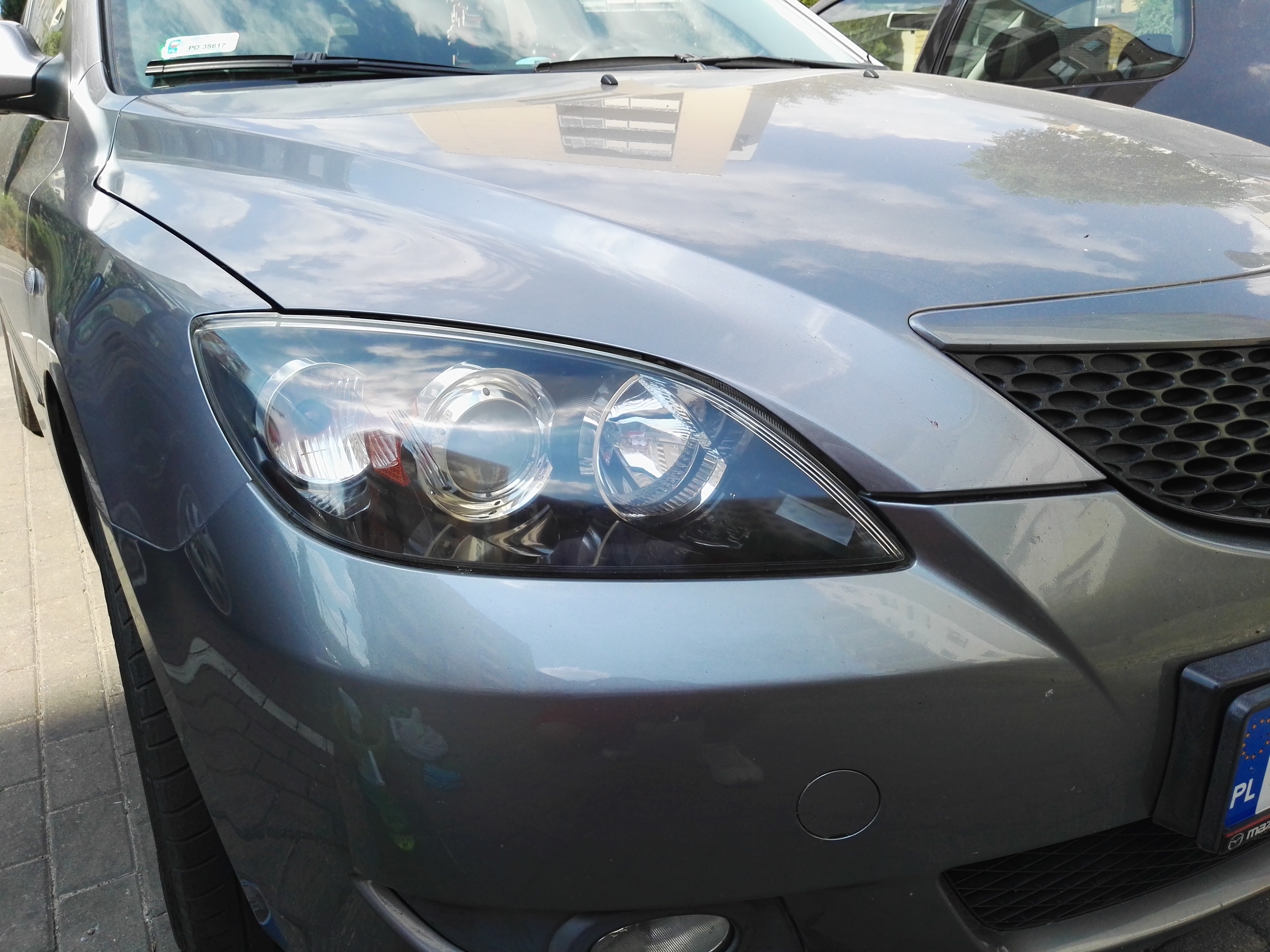 Moja fascynacja tym większa, iż jest to mój pierwszy własny samochód. Przesiadka z ruchu pieszego / rowerowego i komunikacji miejskiej na to, a nie inne auto, było planowane dłuższy czas. Model 3 HB w wersji BK z silnikiem benzynowym podpatrywałem od początku po zdaniu prawa jazdy i postawiłem sobie za cel, że w końcu taką sobie sprawię. Pierwotnie szukałem głównie sztuki poliftowej w kolorze niebieskim (27B Winning Blue) i obowiązkowo na oryginalnych felgach aluminiowych.