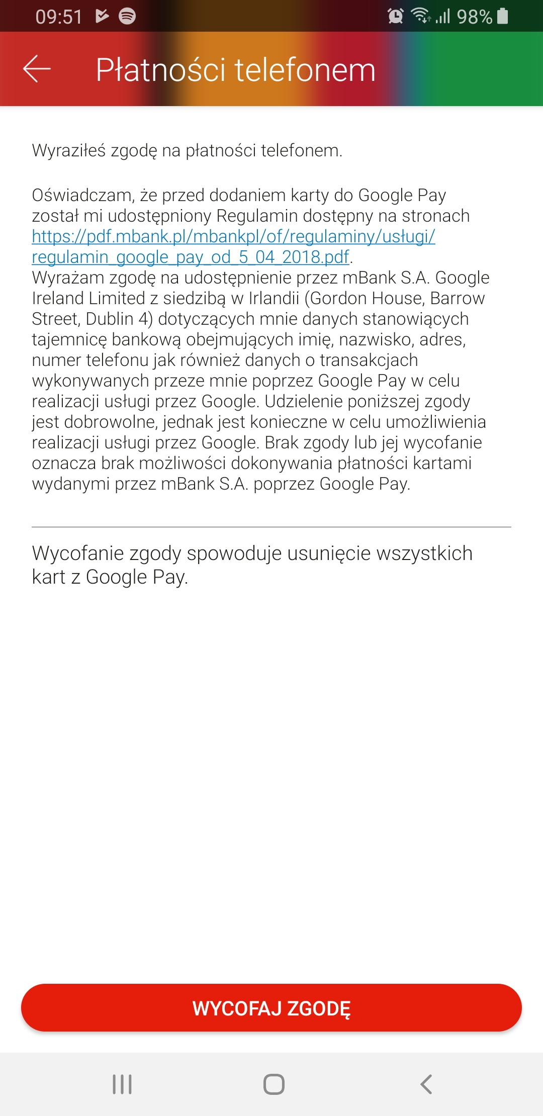 Co do płatności telefonem – teraz używam mBanku, wcześniej po prostu portfel Google. Może obejrzę ustawienia