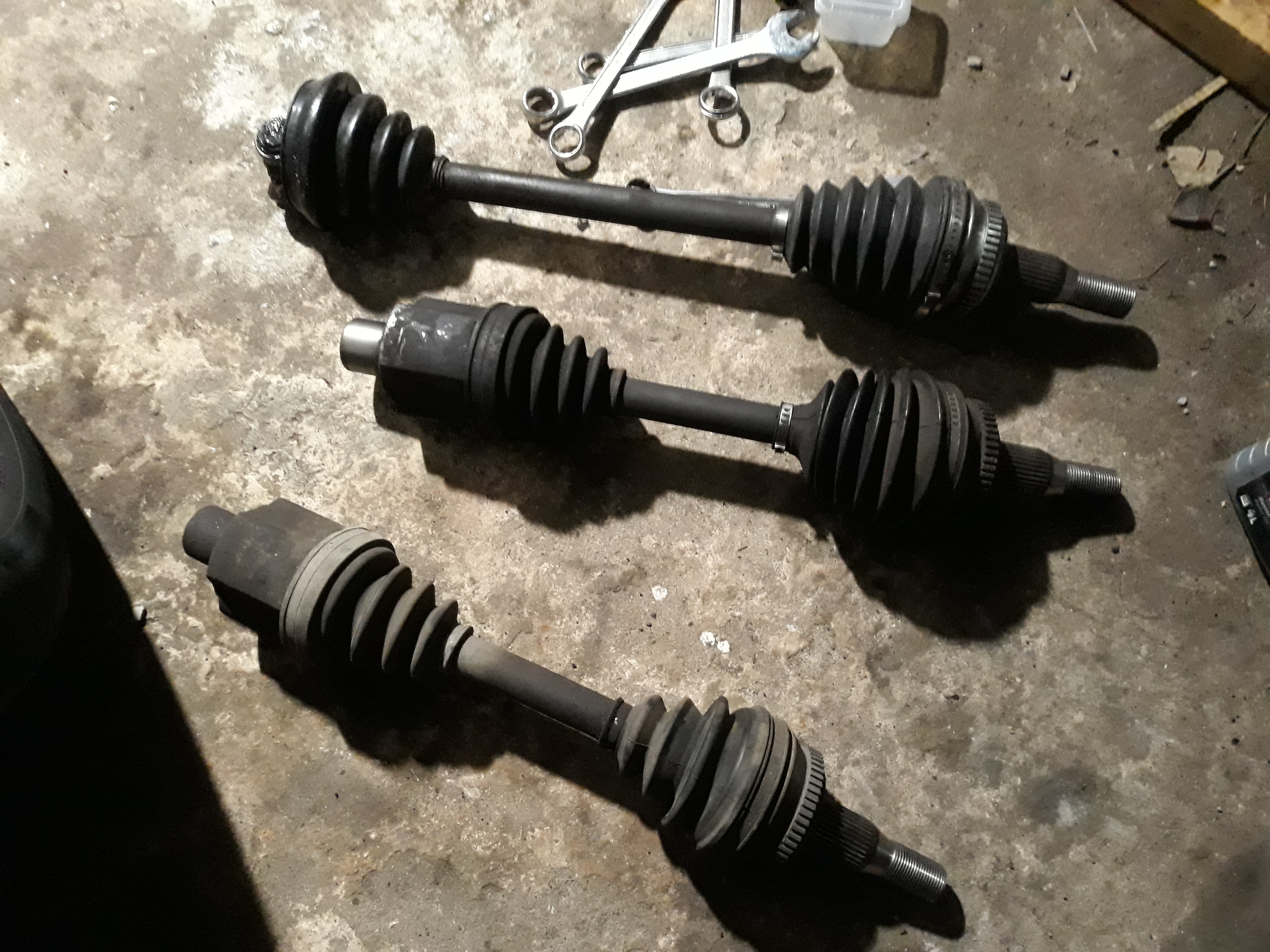 Prace nad autem ruszyły. W ostatnim czasie wpadły dwie półośki z tym, że w prawej zmieniłem przegub zew. na nowy. W pozostałych przegubach zmiana smaru no i nowe opaski wiadomo, gum nie ruszałem bo są w super stanie. 100zł za półośkę to jak za darmo. Samochód teraz jeździ płynnie, nic nie trzęsie przy dodawaniu gazu jak to było wcześniej. Głównie przegub wew. lewy to powodował, bo był konkretnie rozwalony.Prawy miał lekki luz. Wymieniłem też łączniki stabilizatora. Gumy na stabilizatorach wyglądają bardzo dobrze.