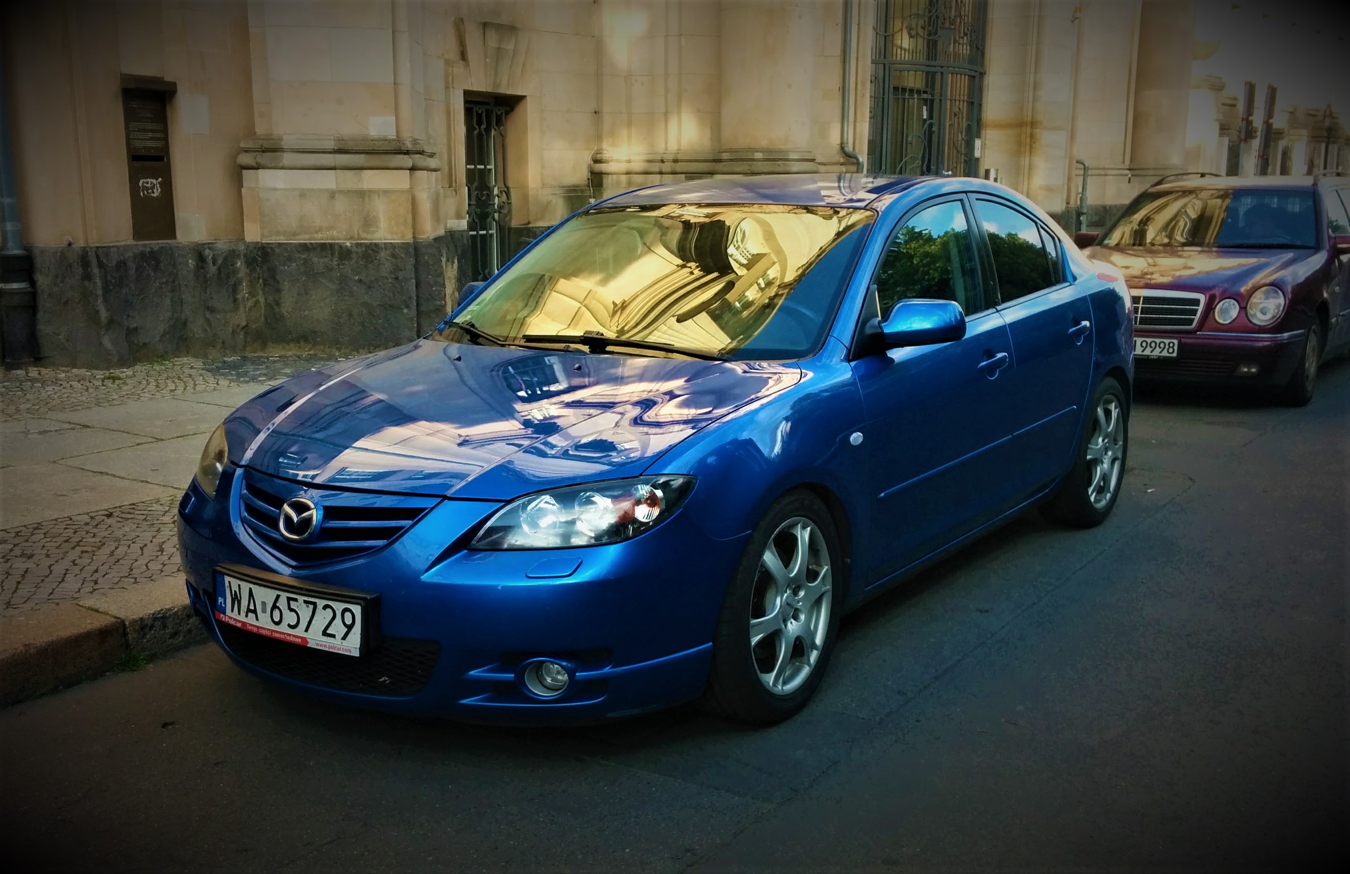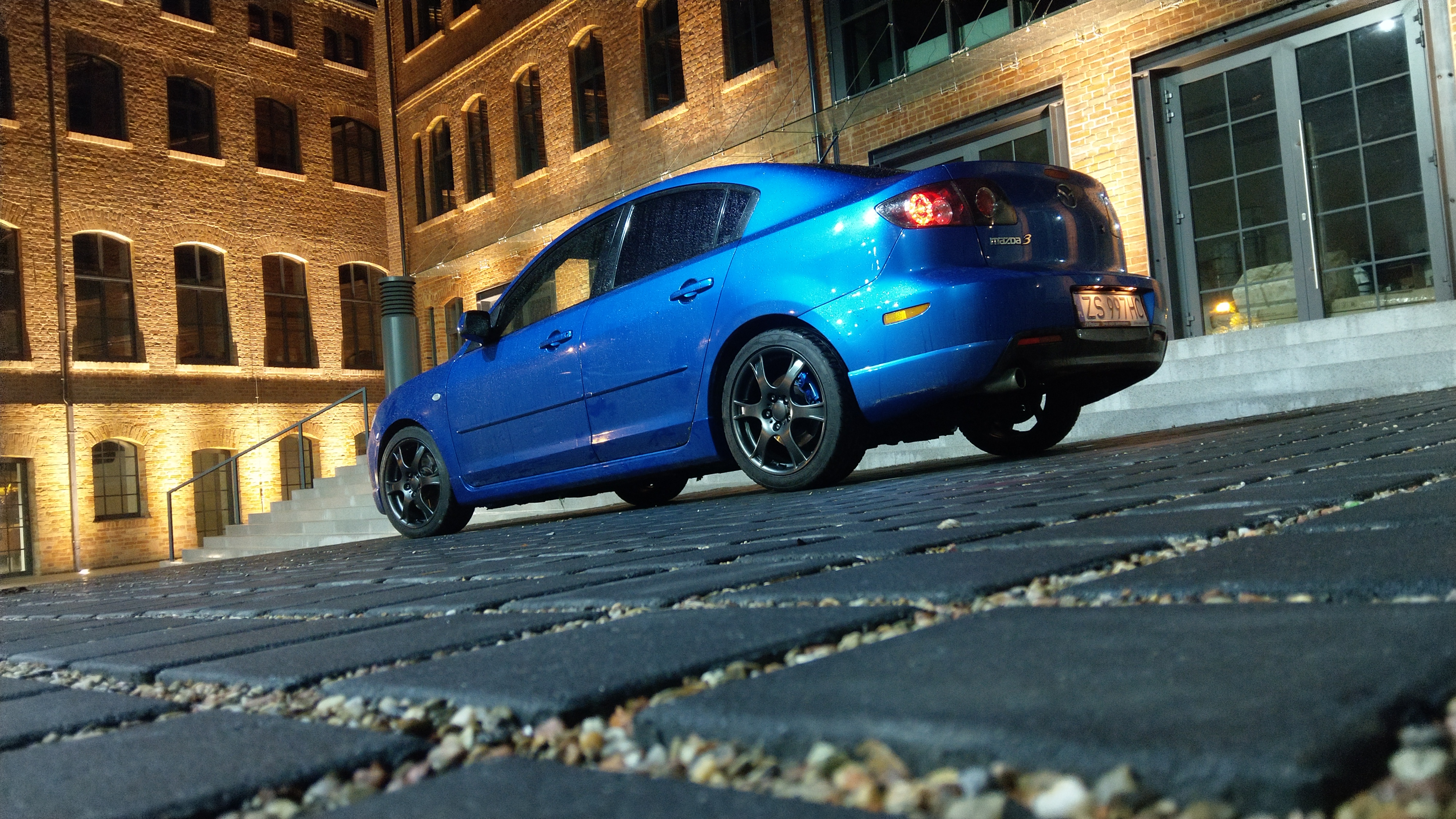 216 000 km . W aucie zakochałem się odrazu zmiana z 90KM na 150KM była ogromną uciechą wiec trasa Warszawa-Szczecin nie zajeła wiele czasu :) . Mazda została zakupiona na zakładanym jeszcze przez Niemca zawieszeniu Bilstein amortyzatory plus sprężyny,niestety jak to niemcy mają w zwyczaju ten miał zabawe w agroLEDtuning czyli podświetlenie wszystkiego co się nie świeci , dywaniki przód i tył , drzwi od spodu i cała reszta która nie emituje światła. Jako że podejście do aut raczej mam konserwatywne a więc pierwsza praca przy aucie było wywalenie kilkunastu metrów kabli i diód LED .Po przejeżdzeniu miesiąca okazało się że 2 z 4 sprężyn nadają sie już tylko to wymiany jako że Bilsteina już nie ma w zawieszeniu analogicznie trafiły tam sprężyny EIBACH PRO KIT -30mm łącznie z wymianą amortyzatorów na zwykłe już nie sportowe.Drugą naprawą w tym aucie było pozbycie się irytujacych pierdół tak wiec na pierwszy ogień doszły spinki nadkoli,nowy zbiorniczek płynu do szybk OEM (400 zł) wymiana Xenonów Philips , wymiana termostatów plus wszystkie filtry i olej 5w30 CASTROL. Niestety w grudniu 2017 silnik padł więc w nagrode dostał 2 życie .