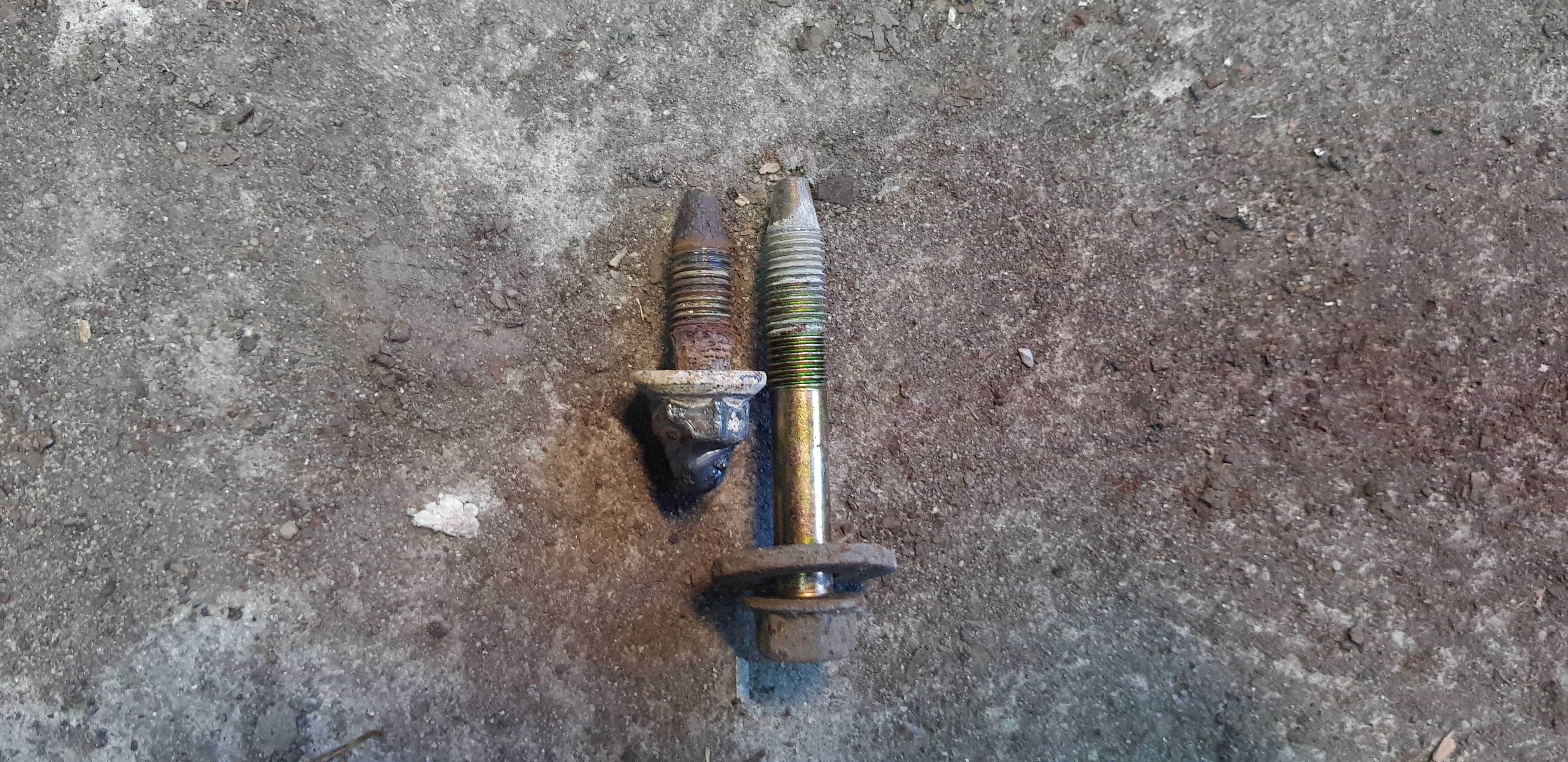 Dzisiaj sie udalo o dziwo wykrecic resztke śruby z podluznicy od wózka, dla porownania cala obok.
