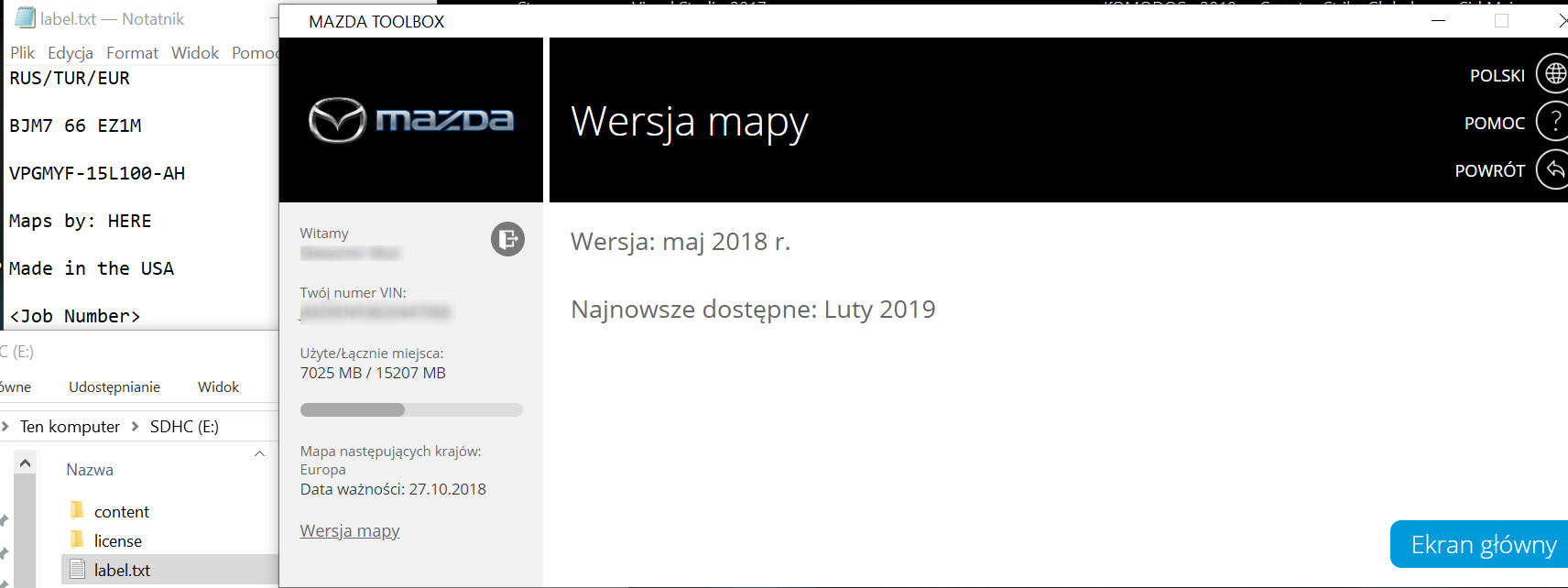 Karta oczywiście odbezpieczona, w końcu wbił się do niej nr VIN auta. Dlaczego jednak mimo iż karta jest najnowsza z 2019r, ja ciągle mam stare mapy z maj 2018r?
