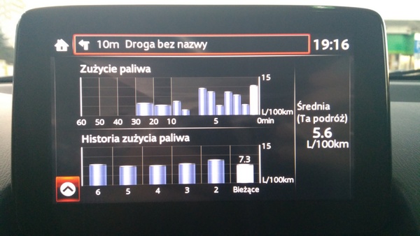 Trasa Bielsko-Biała – Zakopane – Bielsko-Biała: spalanie według komputera 5,4 l/100 km.