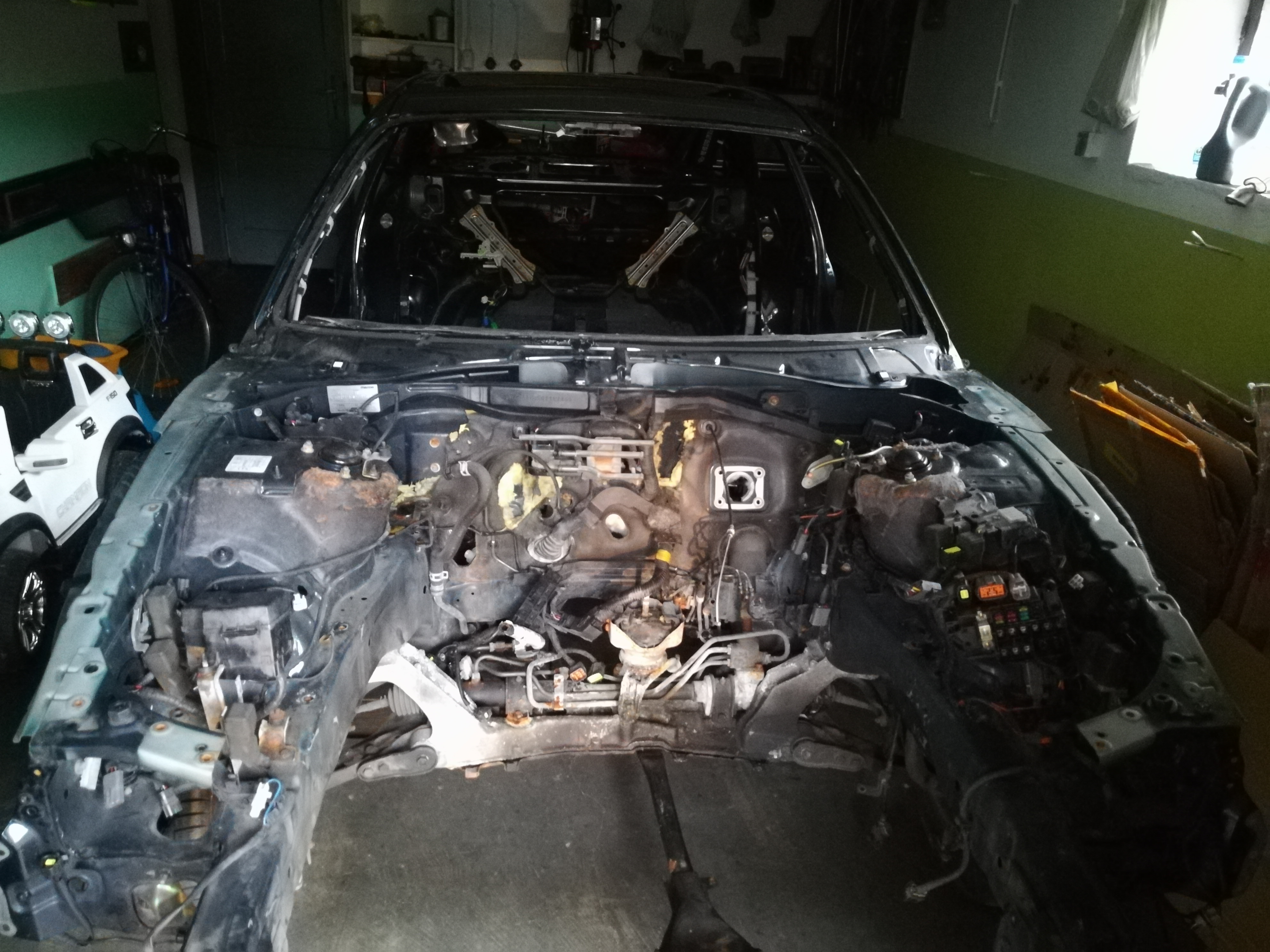 Przywiozłem dawcę zdrowej karoserii, oryginalnie z Niemiec. Buda została rozebrana do ostatniej śrubki, włącznie ze wszystkimi kablami (był tutaj Miller i nie mieliśmy pewności czy wiązka jest taka sama jak z 2.5):