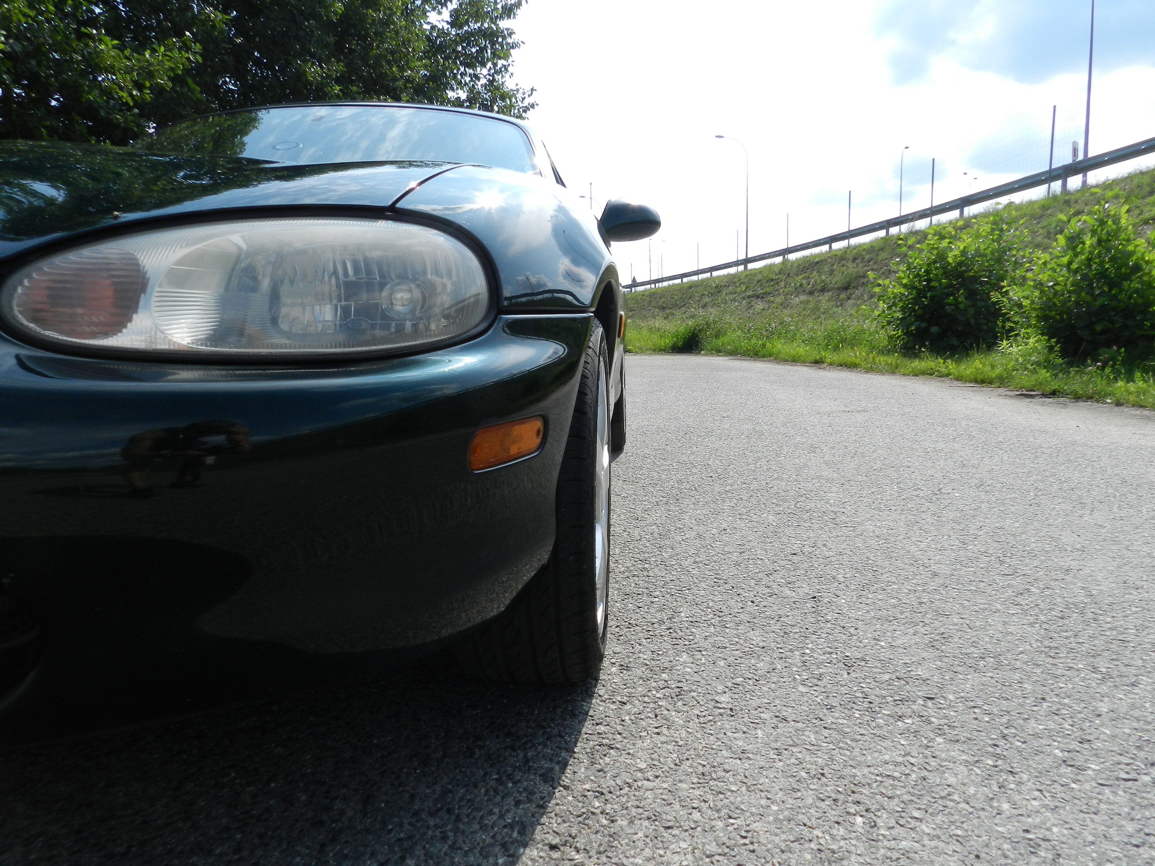 Miata sprawuje się póki co super przed wyjazdem na urlop czasami chodziła na 3 gary, ale jak jeżdżę teraz codziennie to chodzi normalnie :) Zobaczymy jak będzie po tygodniowym postoju. Dzisiaj w końcu mam czas i przekręciłem koła na swoje 16"x7" i okazało się że nie są potrzebne żadne dystanse nic nie obciera. Jedyne co to teraz tak klei się drogi że nie ma opcji latania bokiem. Z czasem zwiększy się moc i będzie git :) A póki co to mam jeszcze 14" do upalania :D