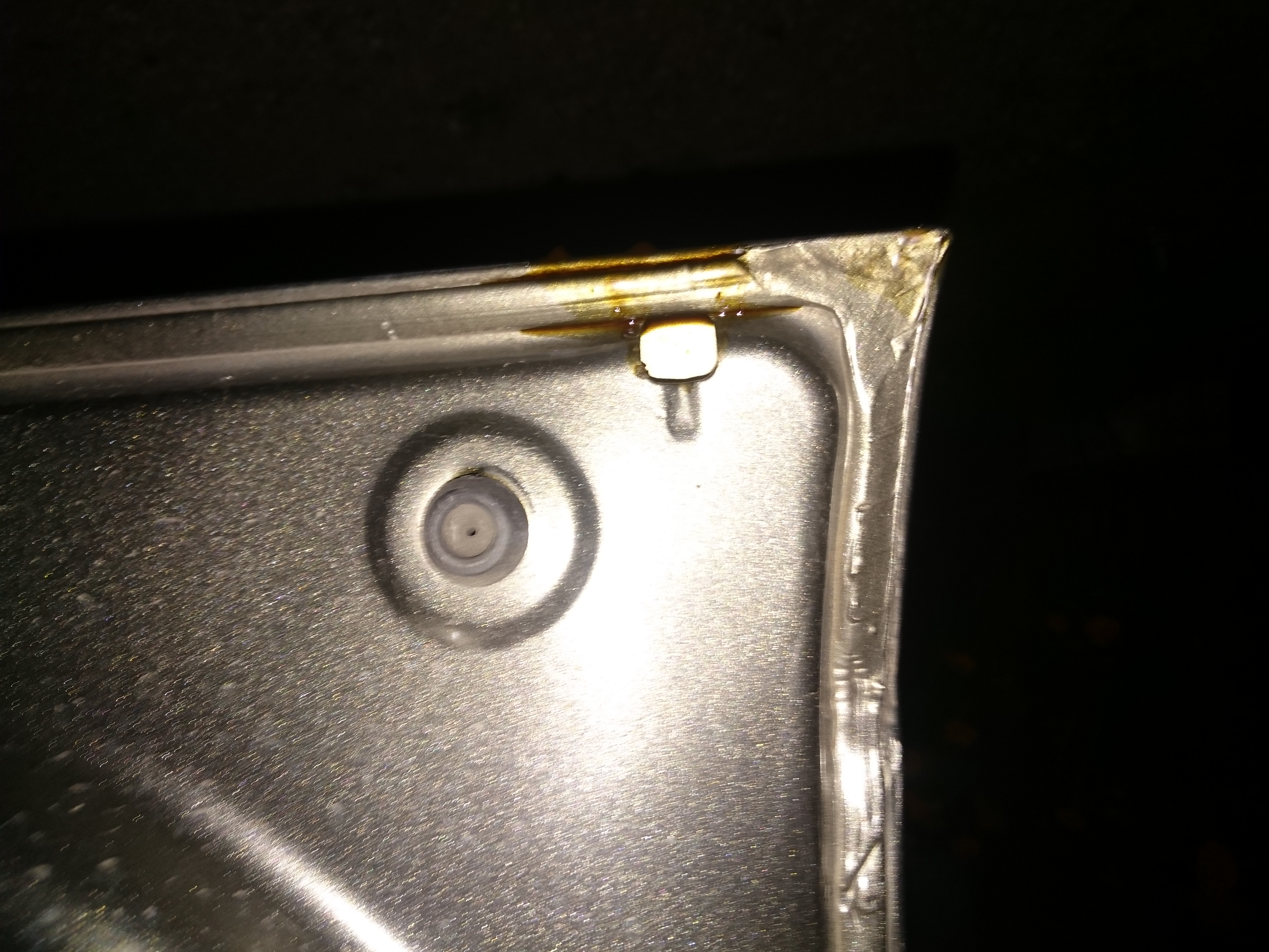 Otwory wlewowe są prawdopodobnie pod tym deklem na akumulatorze.