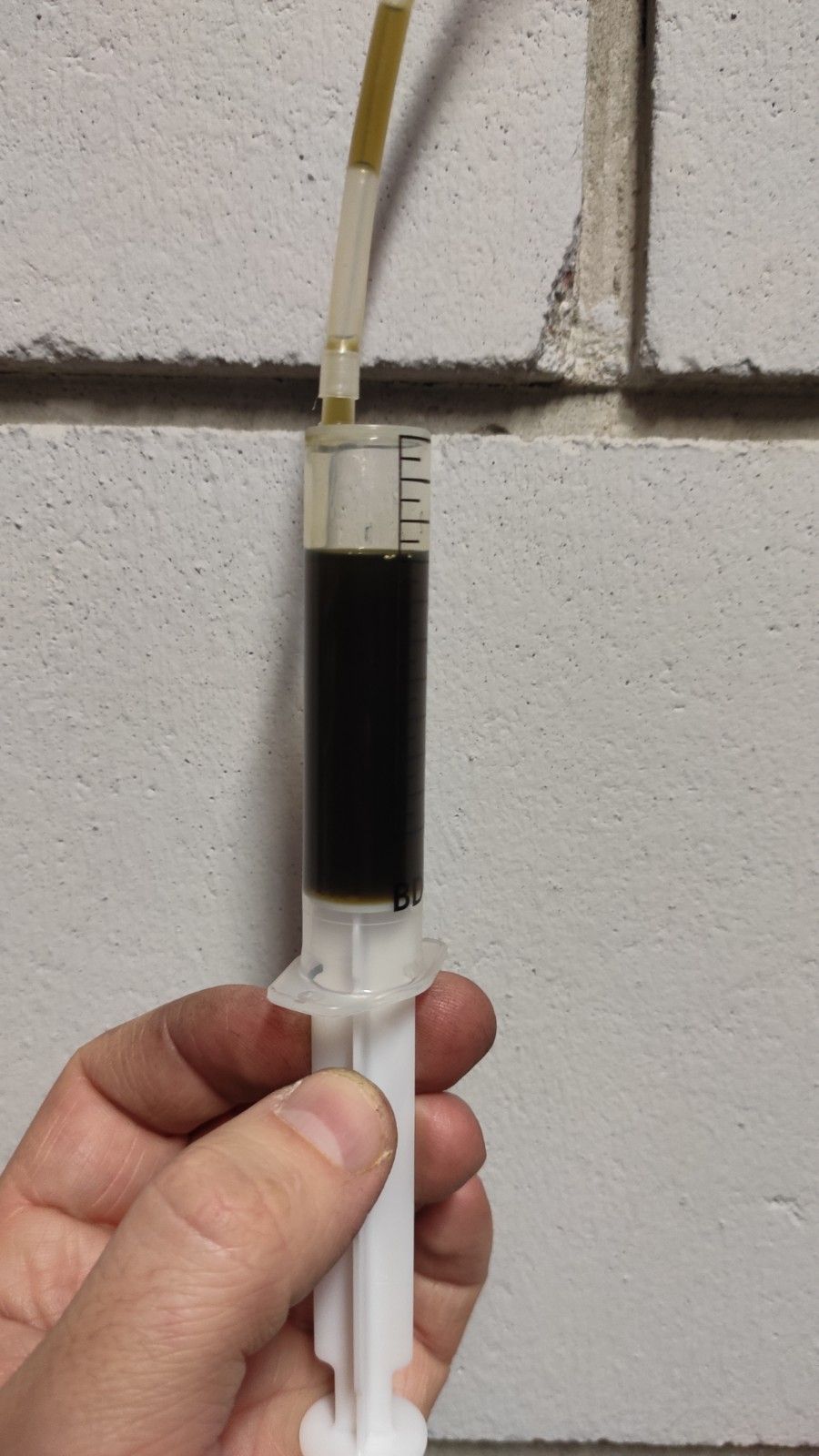 moim zdaniem nie mogli przelać w fabryce. Może już ktoś wymieniał ? tego nie wiem. Co do koloru to na bagnecie wygląda OK, a w strzykawce trochę gorzej. Ale nie wydaje mi się aby był extremalnie zużyty.