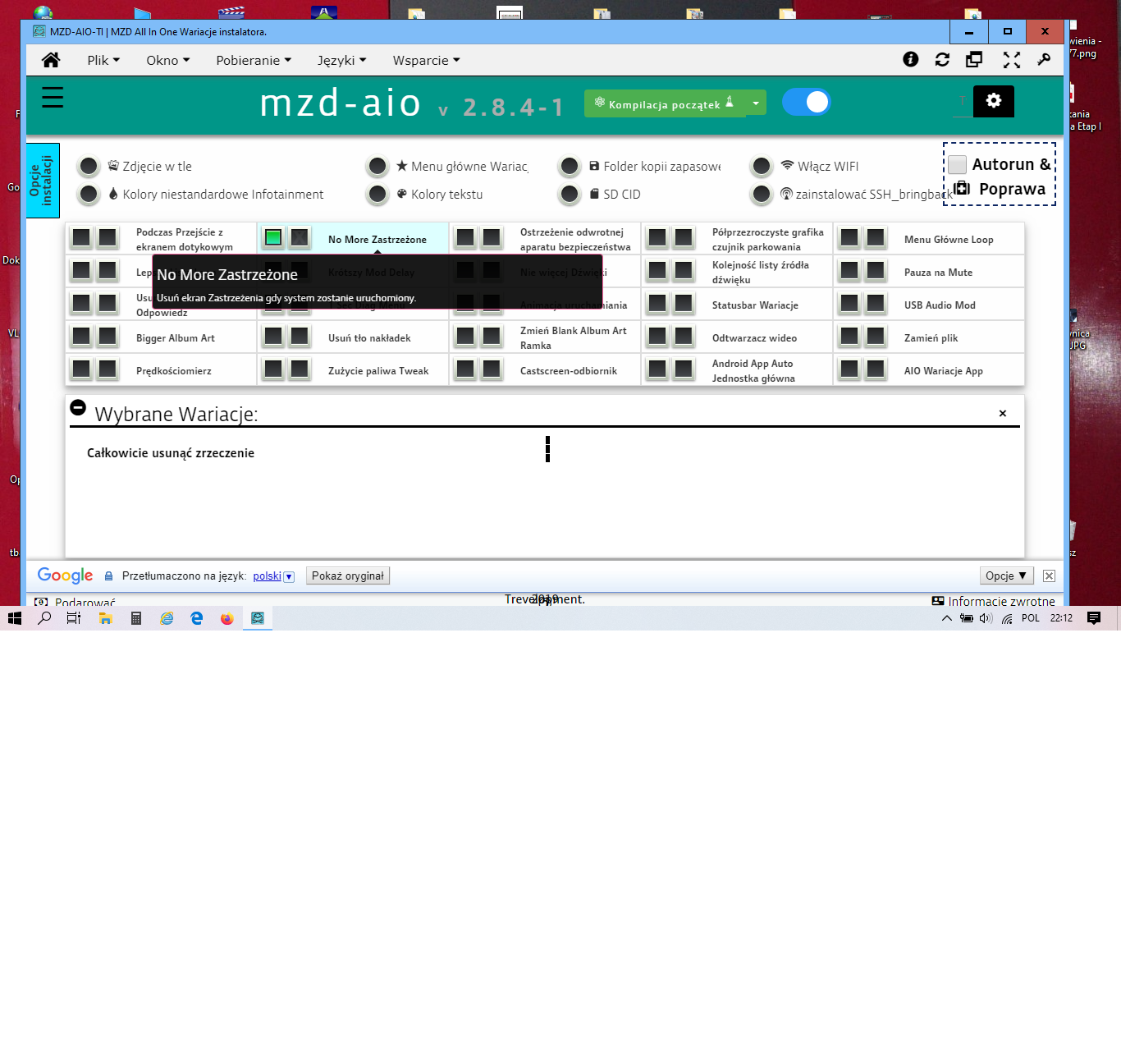 czyli w moim przypadku zaznaczam "no more zastrzeżone" pierwszy kwadrat od lewej tak by nie było ostrzezenia oraz "android app auto jednostka główna"