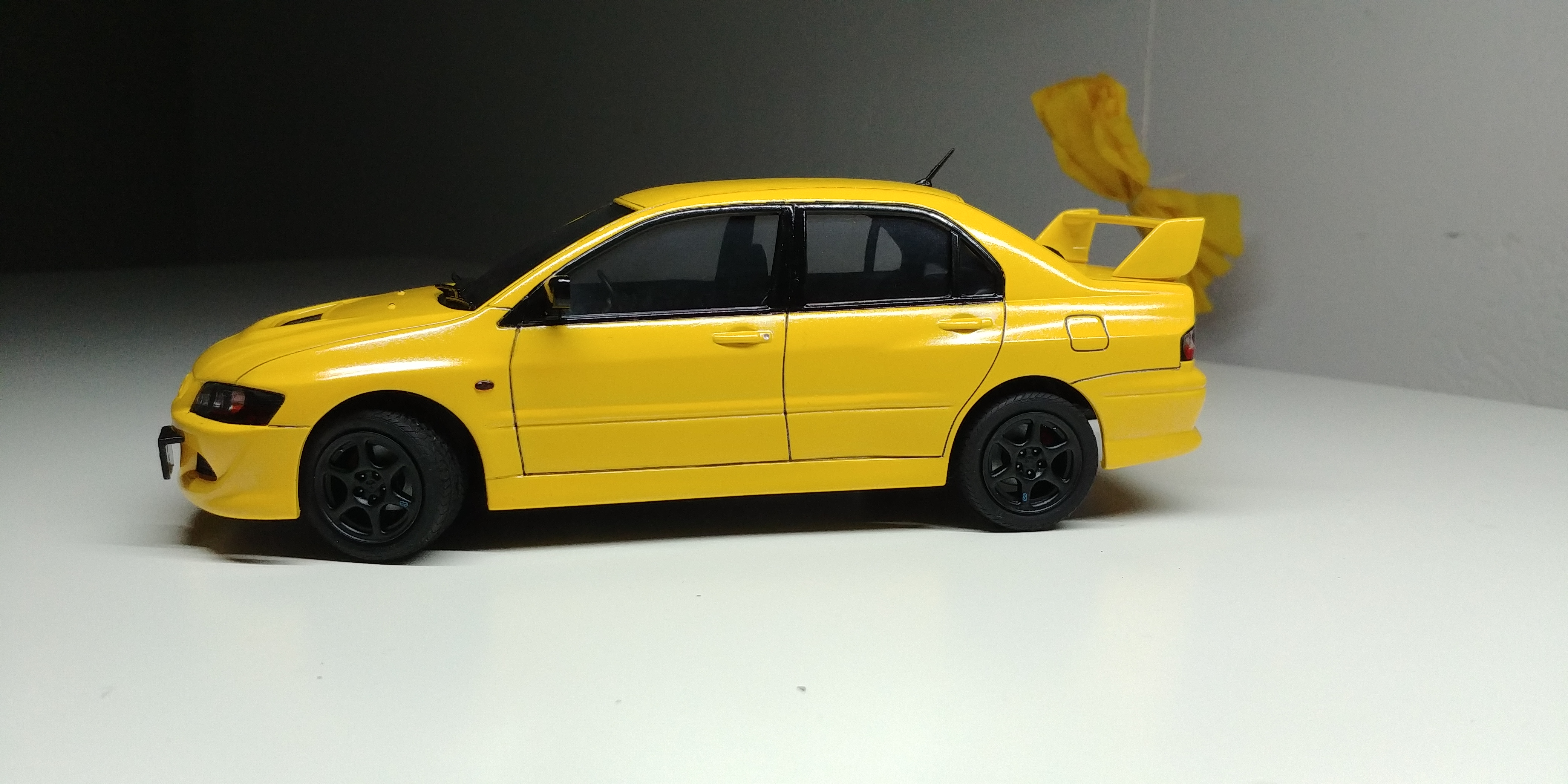 Dostałem od żony pod choinke Skyline'a 2000gt-x 4 door do sklejenia. Skleiłem w pare dni, 3 dni przerwy, wczoraj pojechałem kupić jeden, wróciłem z dwoma i wczoraj kupiony Lancer Evo praktycznie skończony. Zaczyna się robić drogo