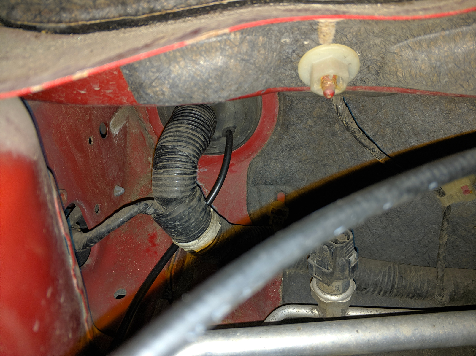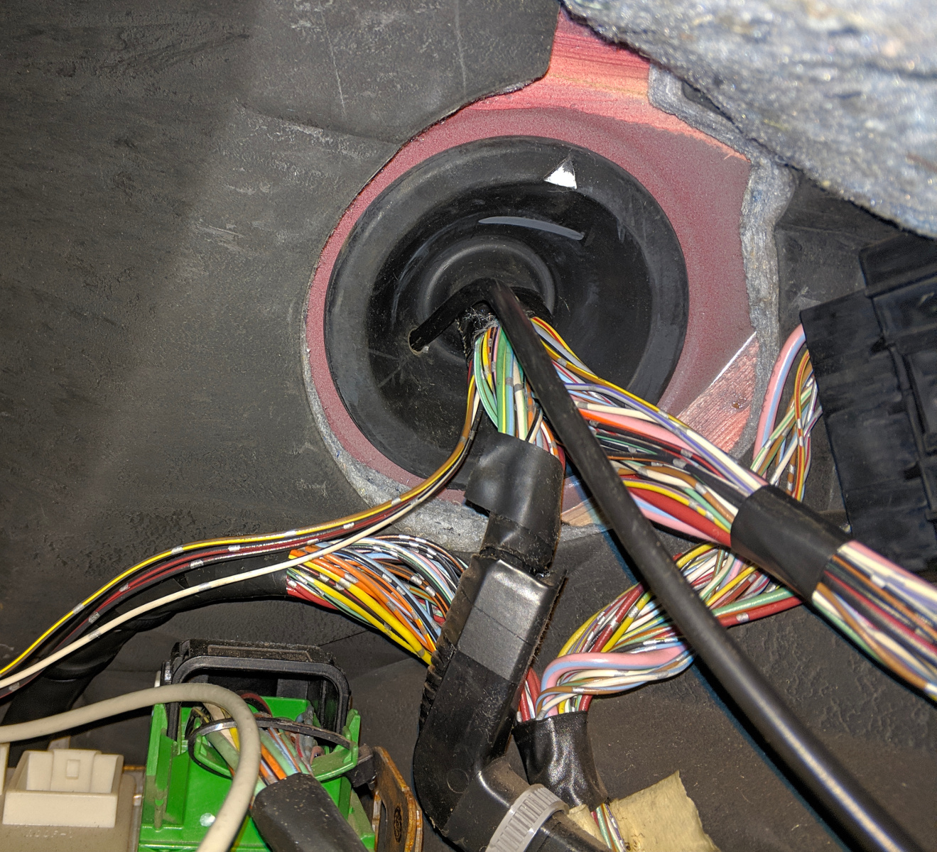 2. Wybieramy miejsce przeprowadzenia kabla z kabiny do komory silnika. Ja uznałem, że najlepszym rozwiązaniem będzie przeprowadzenie kabla za schowkiem.