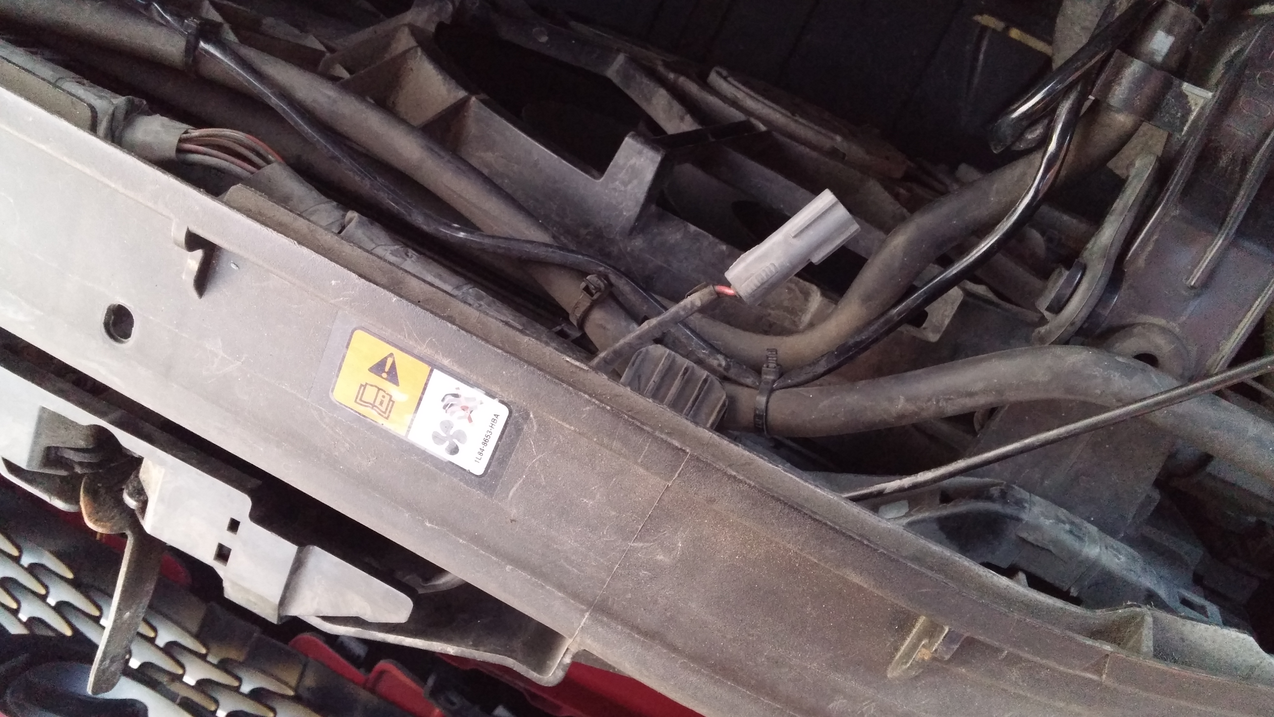 5. Przeciągamy kabel w stronę wtyczki. Ja puściłem go pod zbiornikiem płynu chłodniczego a następnie wzdłuż wiązki nad wentylatorem.