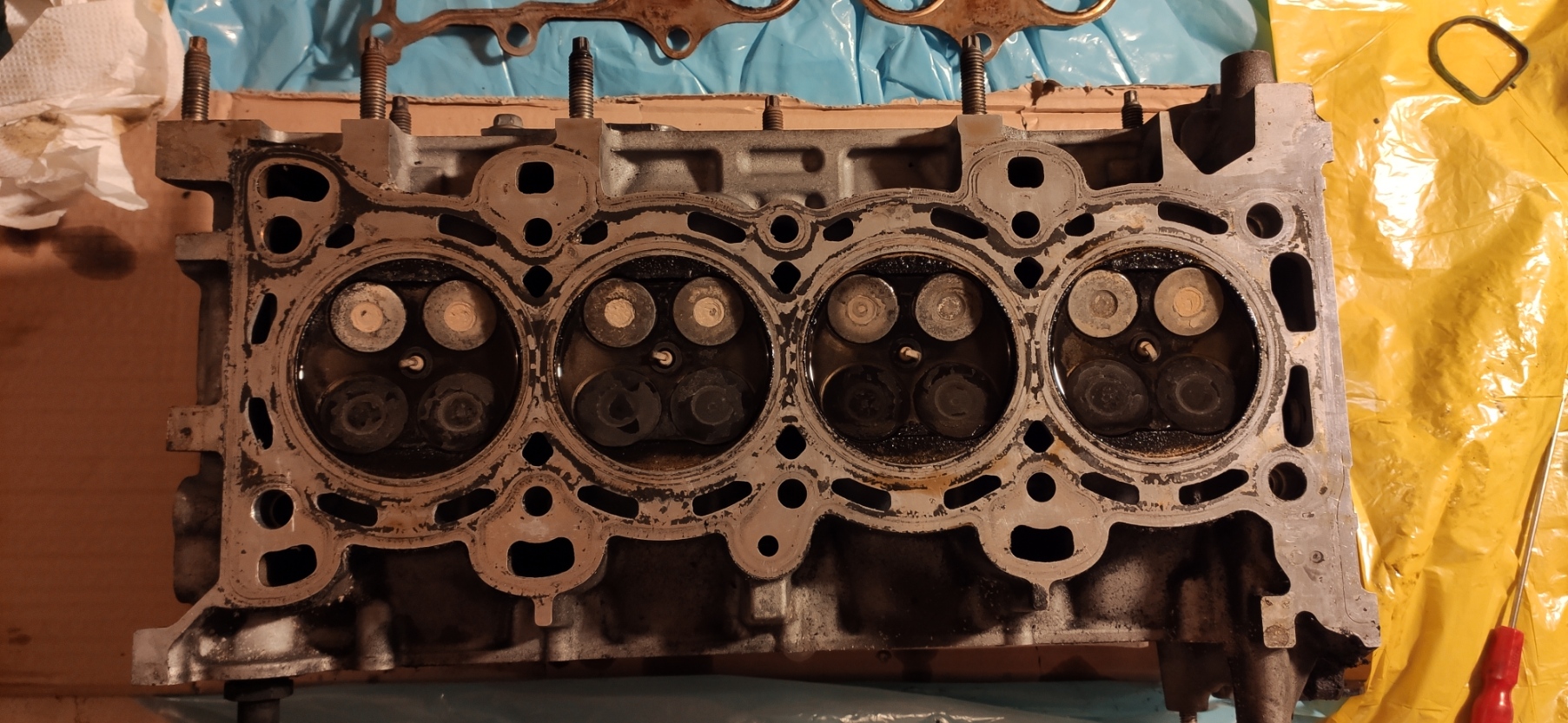 Dwa wieczory w garażu wystarczyły na zdemontowanie głowicy – nie tylko na drugim cylindrze zawory nie były szczelne. Na początku tygodnia głowica trafi do warsztatu na regenerację.