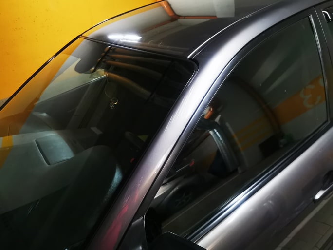 Na dniach zostały przyciemnione przednie szyby – 50% widoczności, nie rzuca się w oczy jakoś bardzo. ale auto wygląda znacznie lepiej:) tymczasowo zostały zdjęte owiewki, za kilka dni je ponownie zamontuje bez blaszek, na cienką taśmę dwustronną 3M. Dodatkowo został zrobiony pas przeciwsłoneczny – 95% przyciemnienia co poprawia widoczność chociażby świateł w słoneczne dni kiedy światło pada na sygnalizatory.