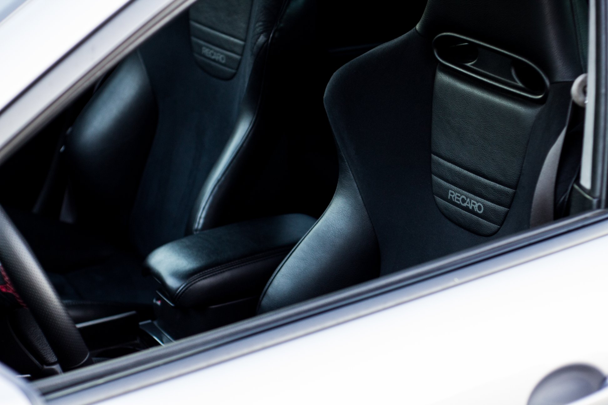 Natomiast to co najbardziej mnie cieszy to w końcu zamontowane fotele Recaro z Renault Megane 2 RS z wersji CUP. I to w idealnie pasującym do mojego wnętrza kolorze, czarna skóra + alkantara