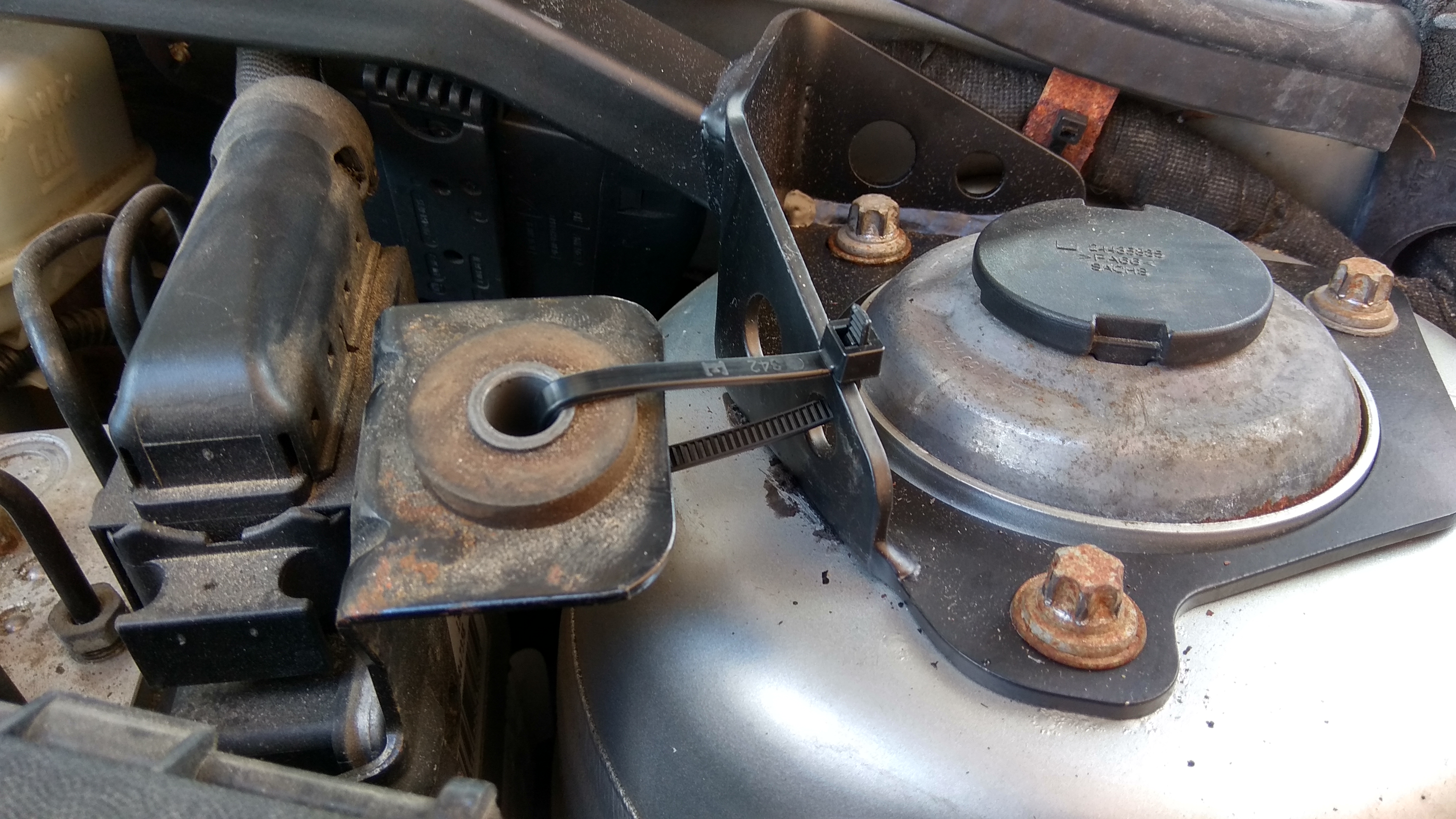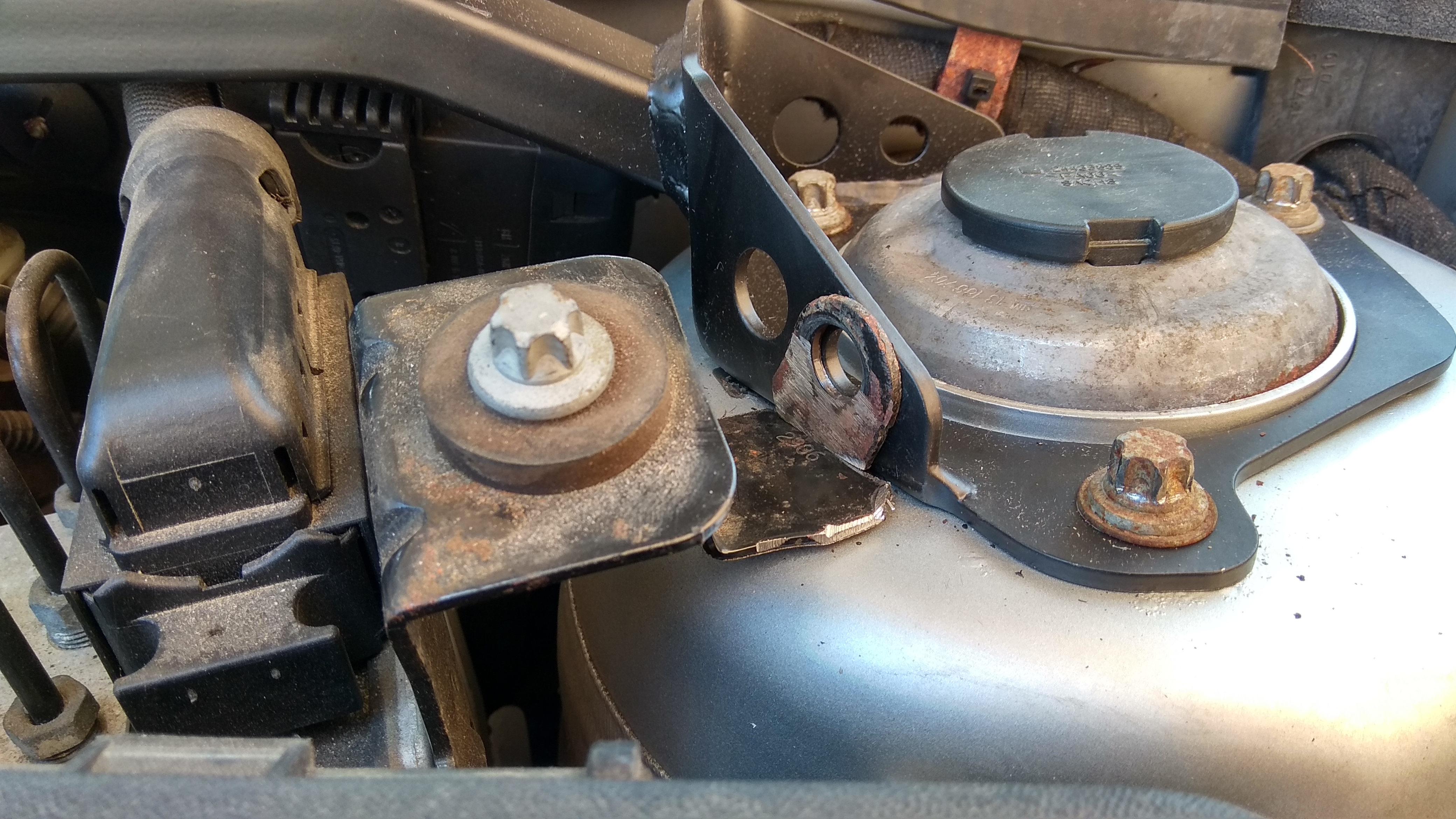 Oczywiście musi być problem – górne mocowanie pompy ABS i kompa: