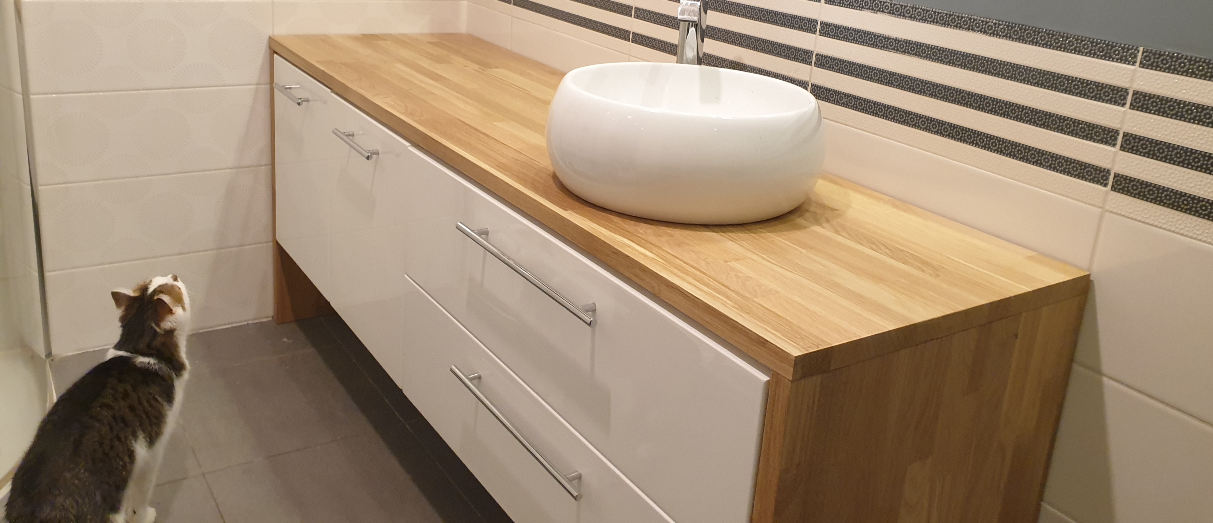 Jak robisz meble z drewna to wiekszosć zamawiasz na wymiar i zostaje ci to samemu skrecić, polakierować, czy jak ja preferuje olejować. Olejowanie to banalnie prosta czynność, minus ze musisz to 2 razy w roku powtórzyć, zwłaszcza w łazience.