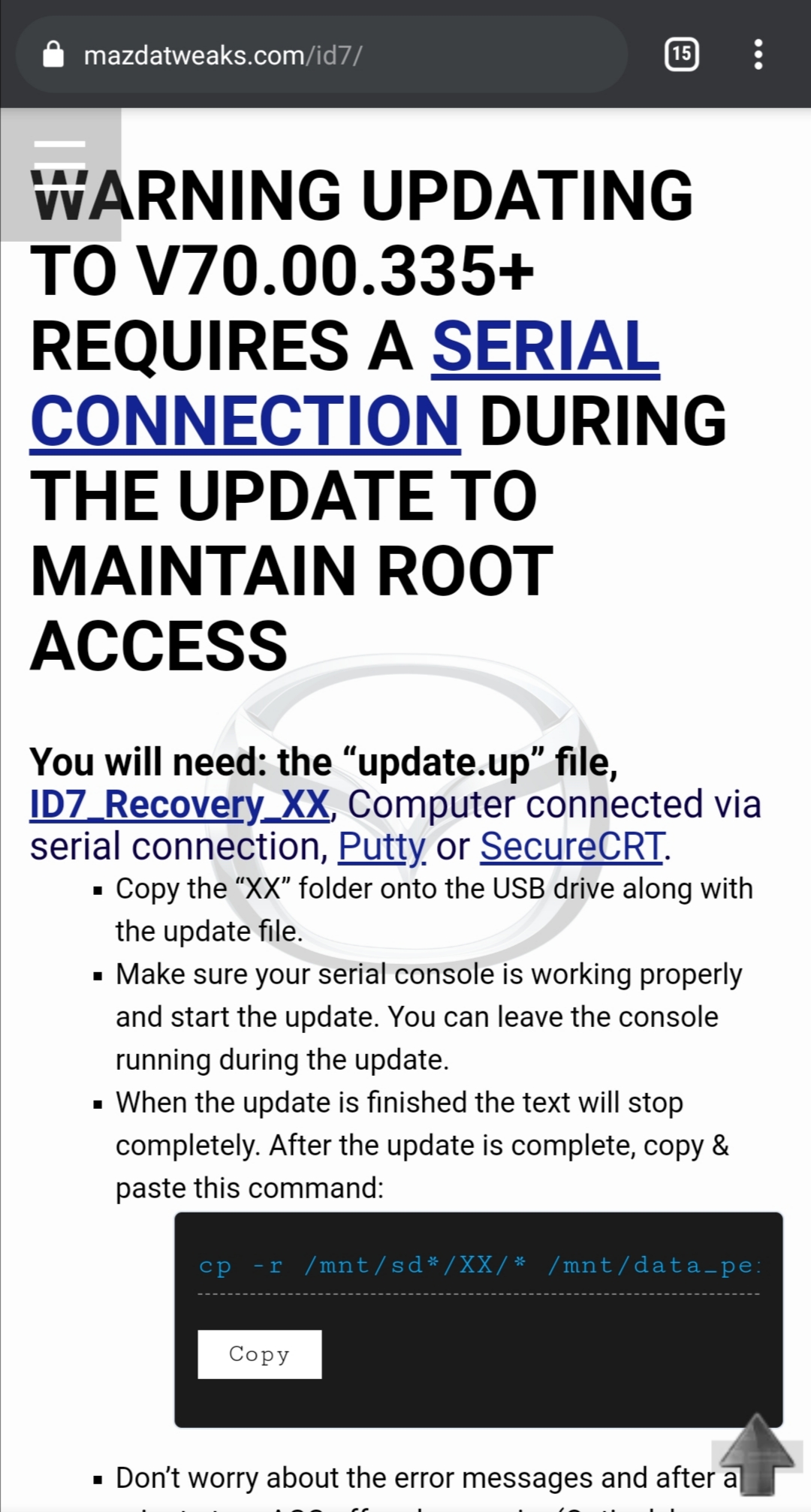 Czytałem ta instrukcję https://mazdatweaks.com/serial/