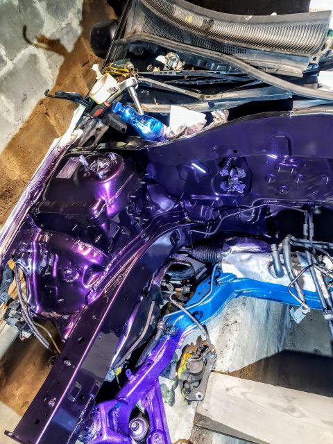 -Moment gdy stała bez silnika wykorzystałem i pomalowałem komorę na fiolet,tak samo jak i zaciski ,zawieszenie,sanki i cały spód.