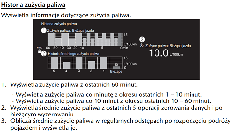 Na podstawie jakich parametrów komputer wylicza zużycie paliwa, to raczej wiedzą tylko programiści Mazdy. A co do wyjaśnienia treści ekranu, to w instrukcji jest to wszystko całkiem dobrze wyjaśnione.