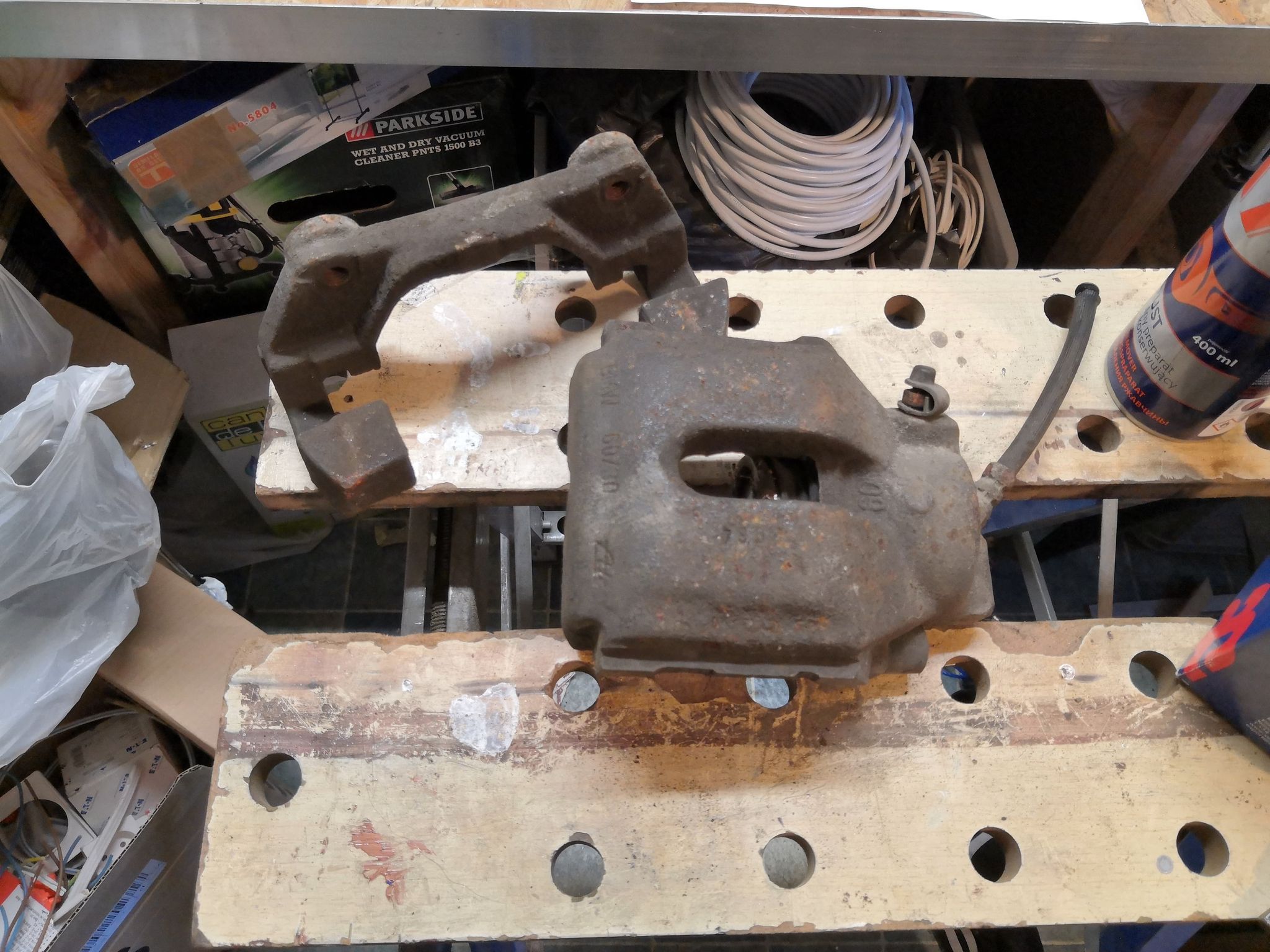 Czwarty problem – namęczyłem się z odrdzewieniem zacisków. Prawie dwa dni roboty, maczanie dobę w fosolu, malowanie kilkukrotne i dodatkowo klar wysokotemperaturowy i... wzieło i prawie wszystko spłynęło z jednego zacisku pod wpływem DOT4 i Brake Cleanera... Będę to poprawiał, ale już na aucie.