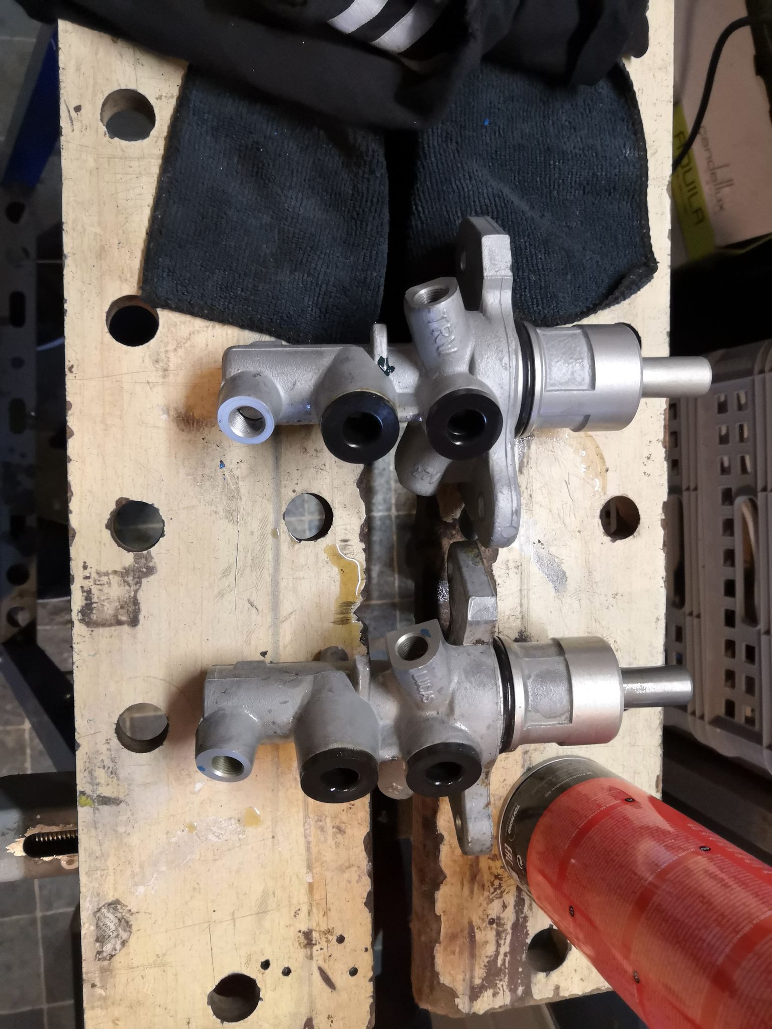 Problemy jakie napotkałem – w zaciskach, które regenerowałem jeden tłoczek wyskoczył bez problemu, a drugi musieliśmy nacinać dremelem i wyciągać w kawałkach. Porąbana sytuacja, ale udało się.