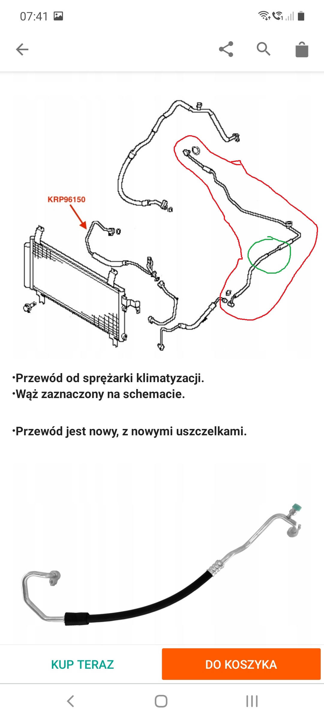 W razie czego posiadam przewód zaznaczony na czerwono ( nowy, nie montowany – tanio oddam ) -przed wymianą koniecznie sprawdzić jak wygląda końcówka, która wchodzi do kabiny, potrafiły się różnić pomimo, że katalogi twierdzą że będzie pasowała.