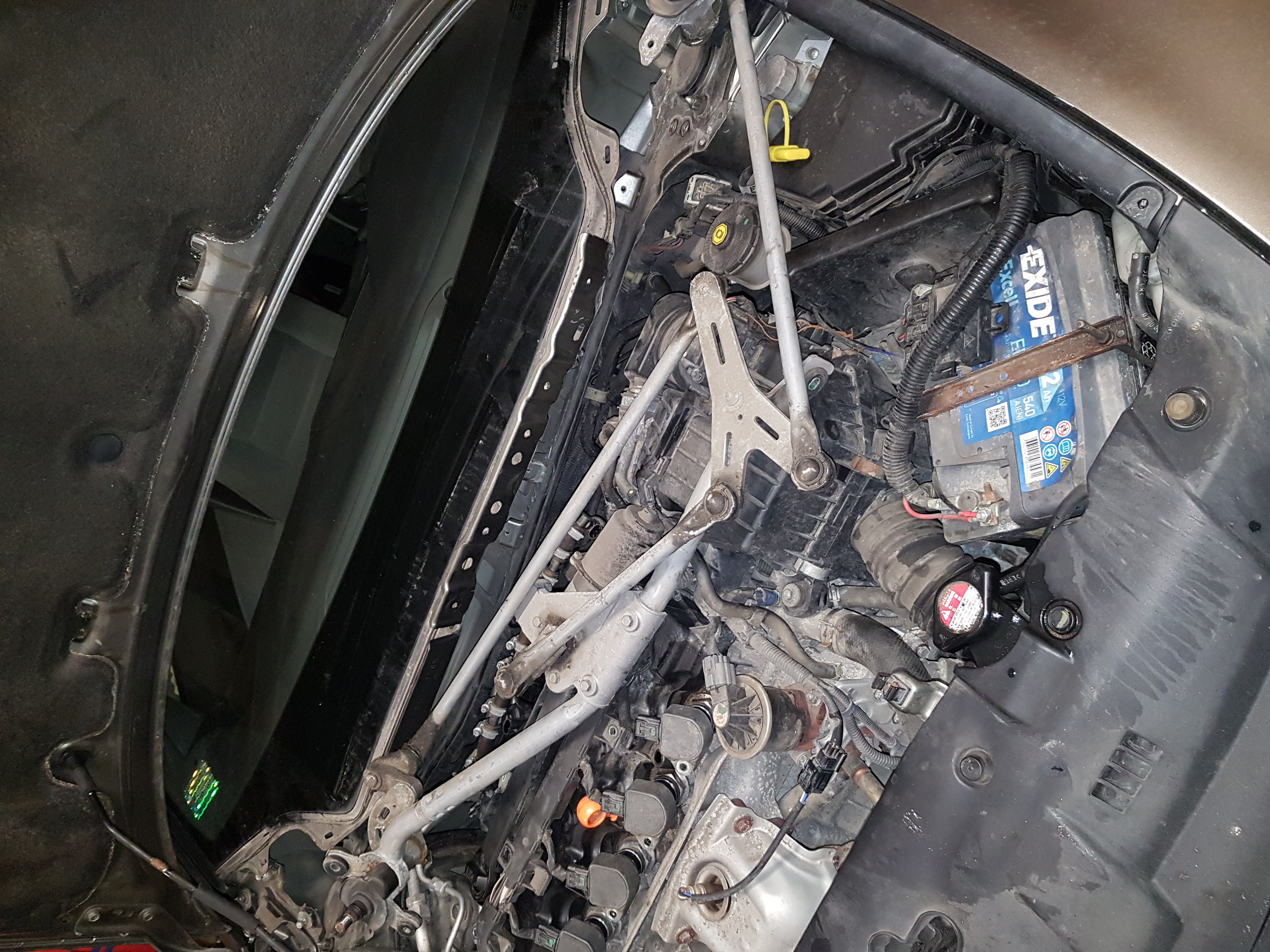 Dalej zająłem się demontażem wycieraczek szyby – musiałem dostać się do mechanizmu, co było o tyle trudne, że głęboko schowany w podszybiu..
