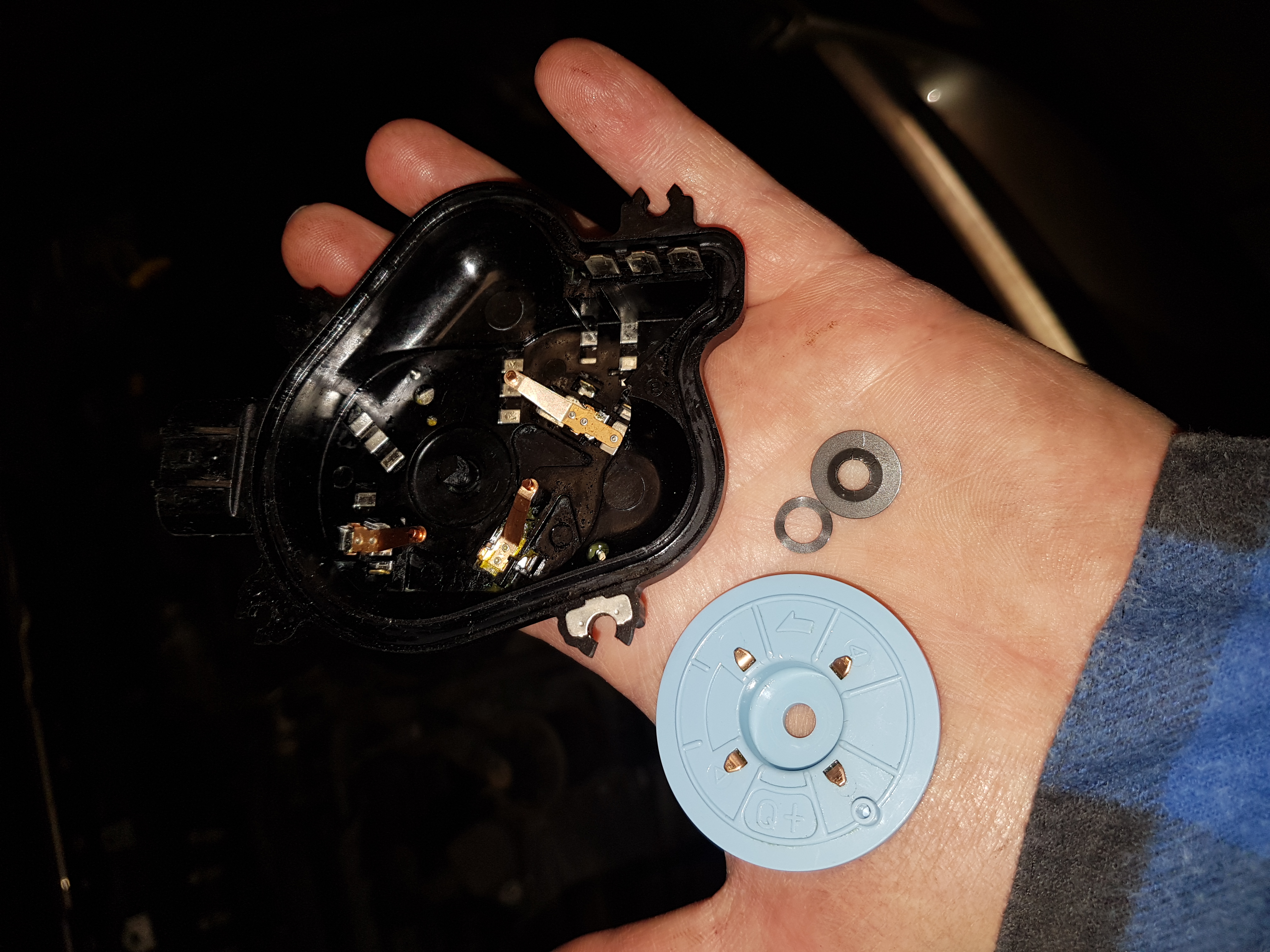 Cała "puszka" , kółko i same styki zasyfione dokumentnie białym kleistym smarem z mechanizmu przekładni (plastikowe zębatki).