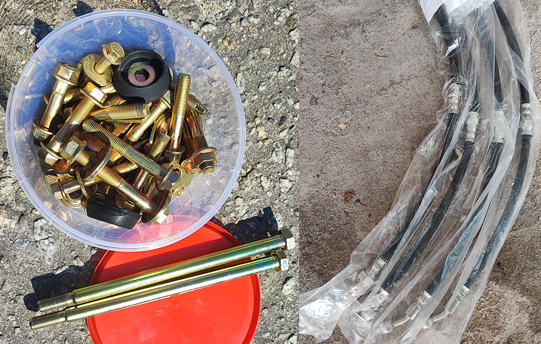 Belka po malowaniu i komplet śrub przed szkiełkowaniem i ocynkiem.