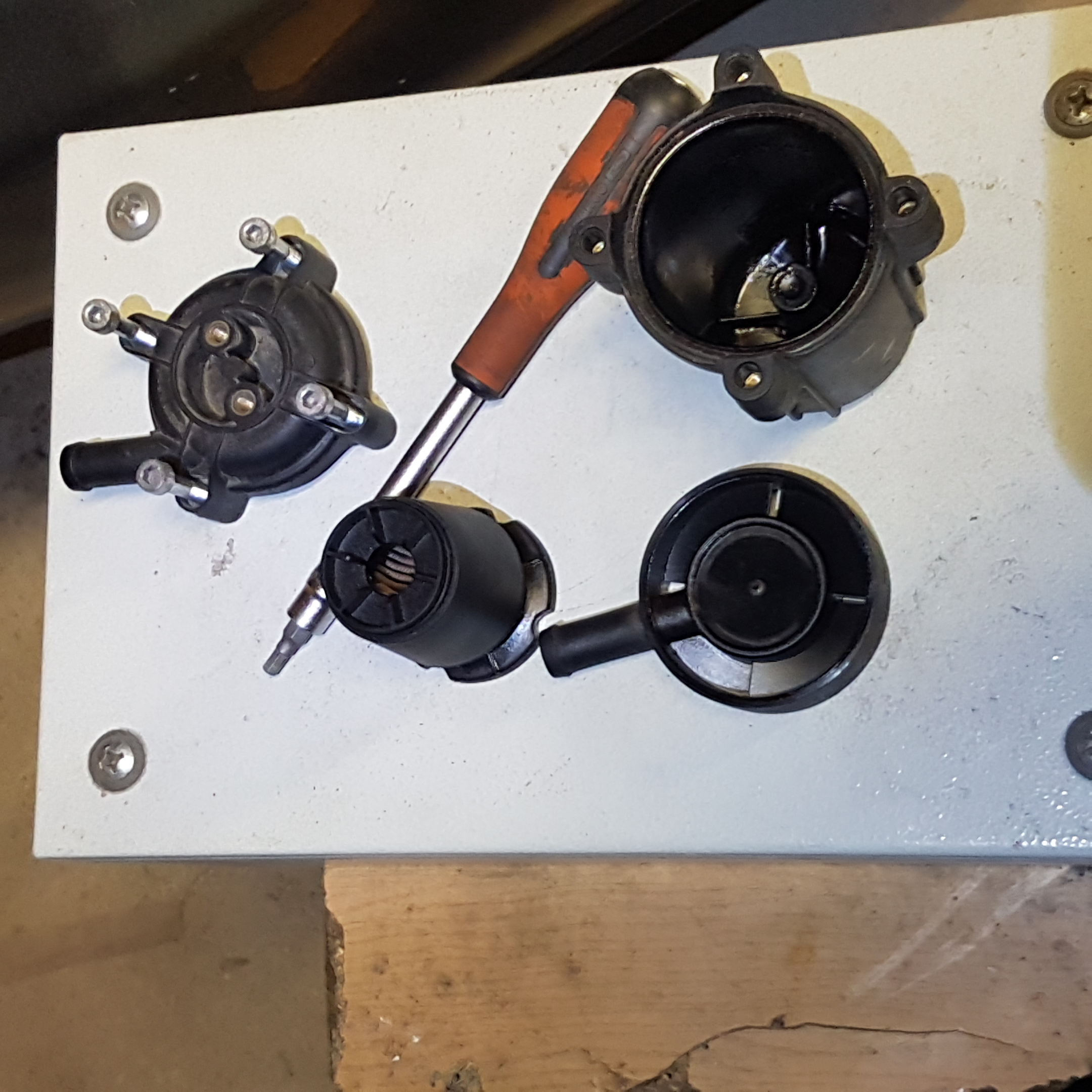 Otwarłem znowu puszkę filtra fazy lotnej – odstojnikowego, coś tam na dnie się zebrało (muszę sprawdzić przebieg od ostatniego czyszczenia, żeby ocenić szybkość zabierania syfu) .
