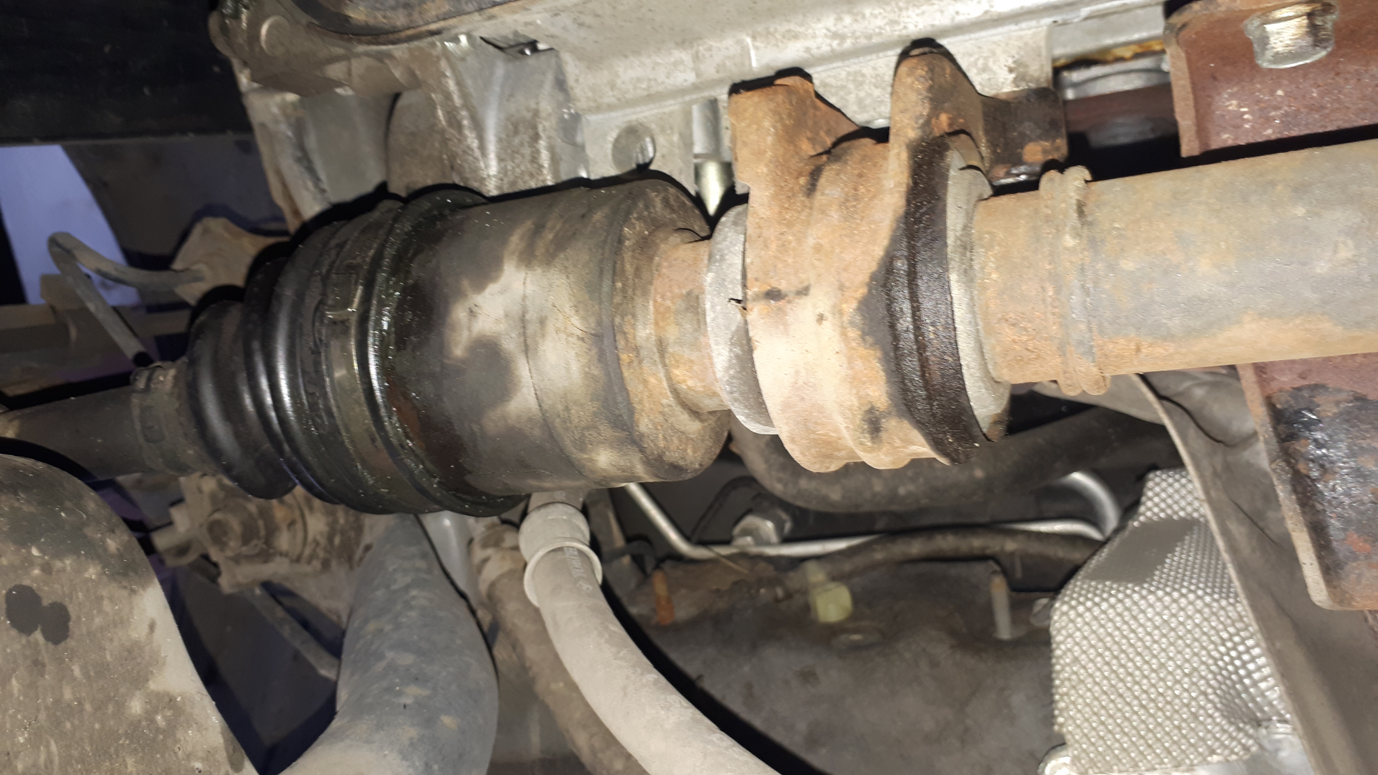 Jak sądzicie, winowajcą trzasków jest podpora czy ten przegub wewnętrzny, bo ewidentnie ubabrane są obydwa.