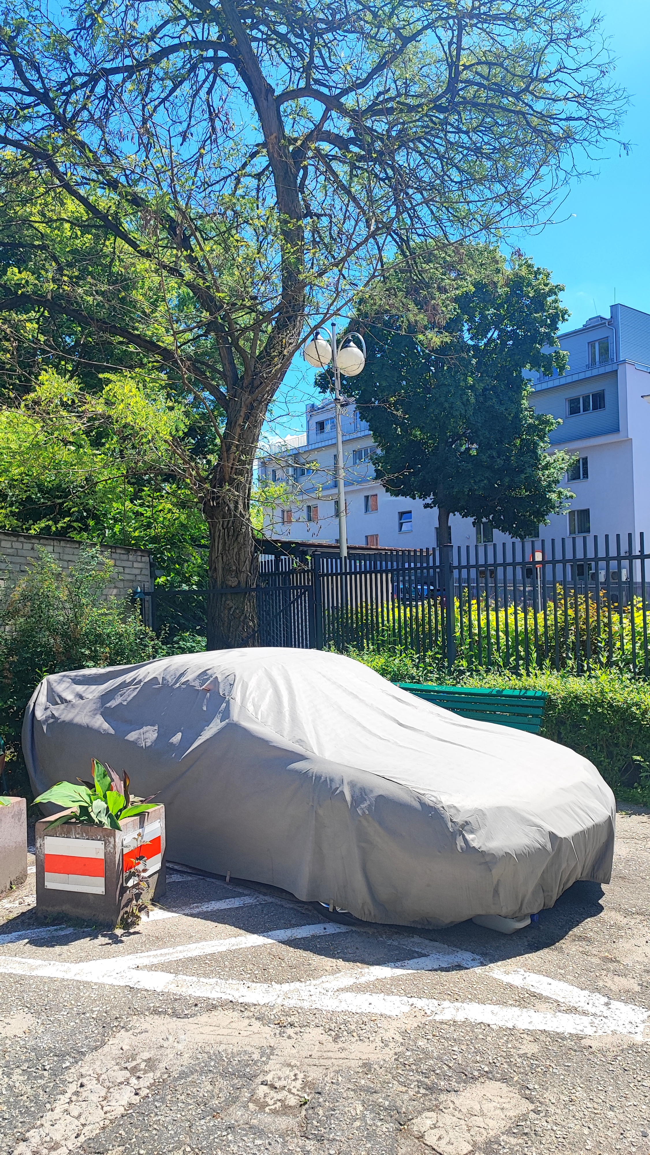 Pod pokrowcem to stała nawet dłużej. Konserwacja podwozia i poprawki lakiernicze to krótki przerywnik po którym wracała pod pokrowiec. Sam pokrowiec mam tzw. oddychający dlatego po tak długim staniu na całym aucie był bardzo drobny pył. Co jest ważne przy trzymaniu auta pod pokrowcem: