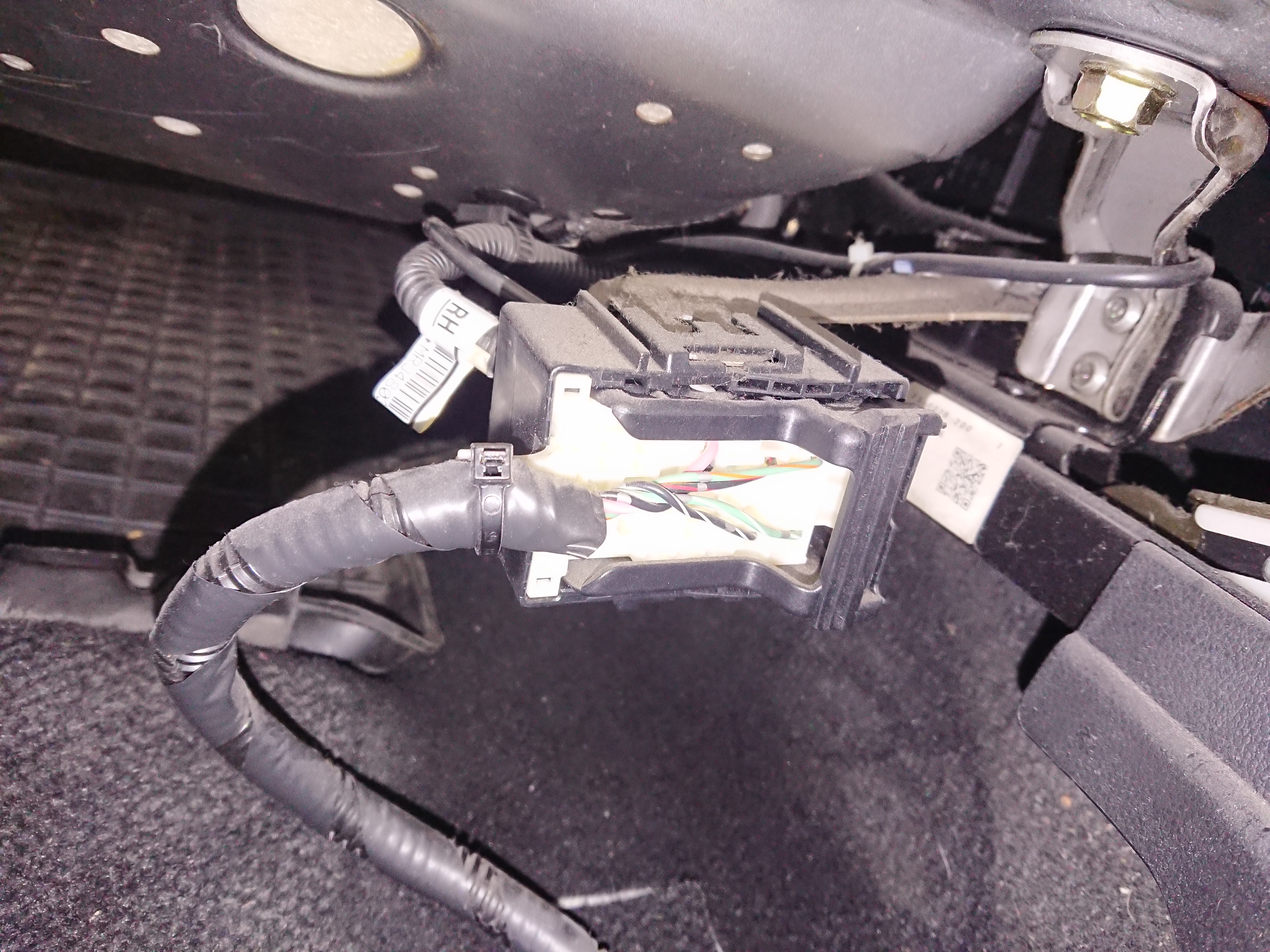 Pod siedzeniami jest trochę dziwna sytuacja, fotel kierowcy ma podpięte trzy wtyczki natomiast fotel pasażera dwie. Nie powinno być na odwrót tzn. fotel kierowcy wtyczka od poduszki, napinaczy pasów a fotel pasażera wtyczka od poduszki, napinaczy pasów i maty zajętości fotela? Kabli wychodzących "z podłogi" też jest o dwa więcej pod fotelem kierowcy (8 vs 6).