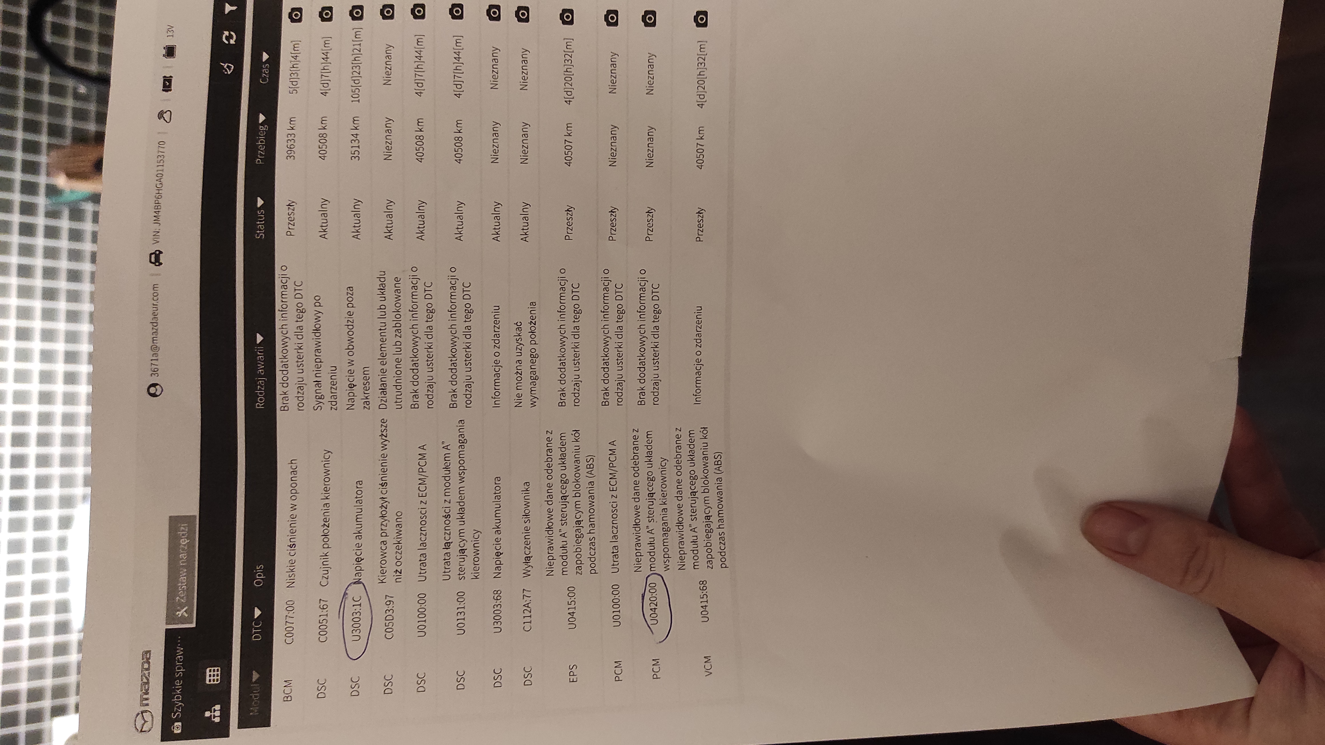Na początek wymiana/podładowanie akumulatora. Mazda przy słabych prądach wariuje. Ponadto większość błędów to błędy komunikacji, niskie napięcie może takie generować.
