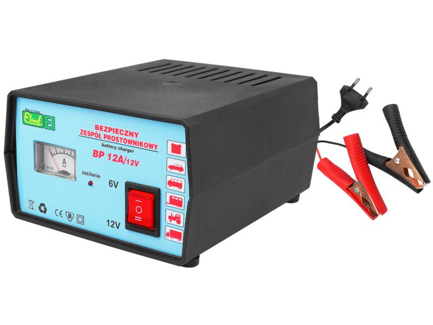 Co do samego prostownika to standardowo plus plus minus minus , i najbezpieczniej na odłączonych klemach.