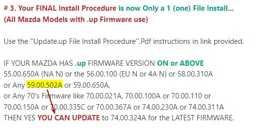 Dzieki andrep, jak zawsze zwięźle i na temat. Z racji blokady ID7 i małych zmian w najnowszym oprogramowaniu MZD faktycznie łatwiej zostać przy wersji 70.000.100. W kwestii upgradu z wersji 59 od razu do najnowszej zasugerowałem sie tym info: