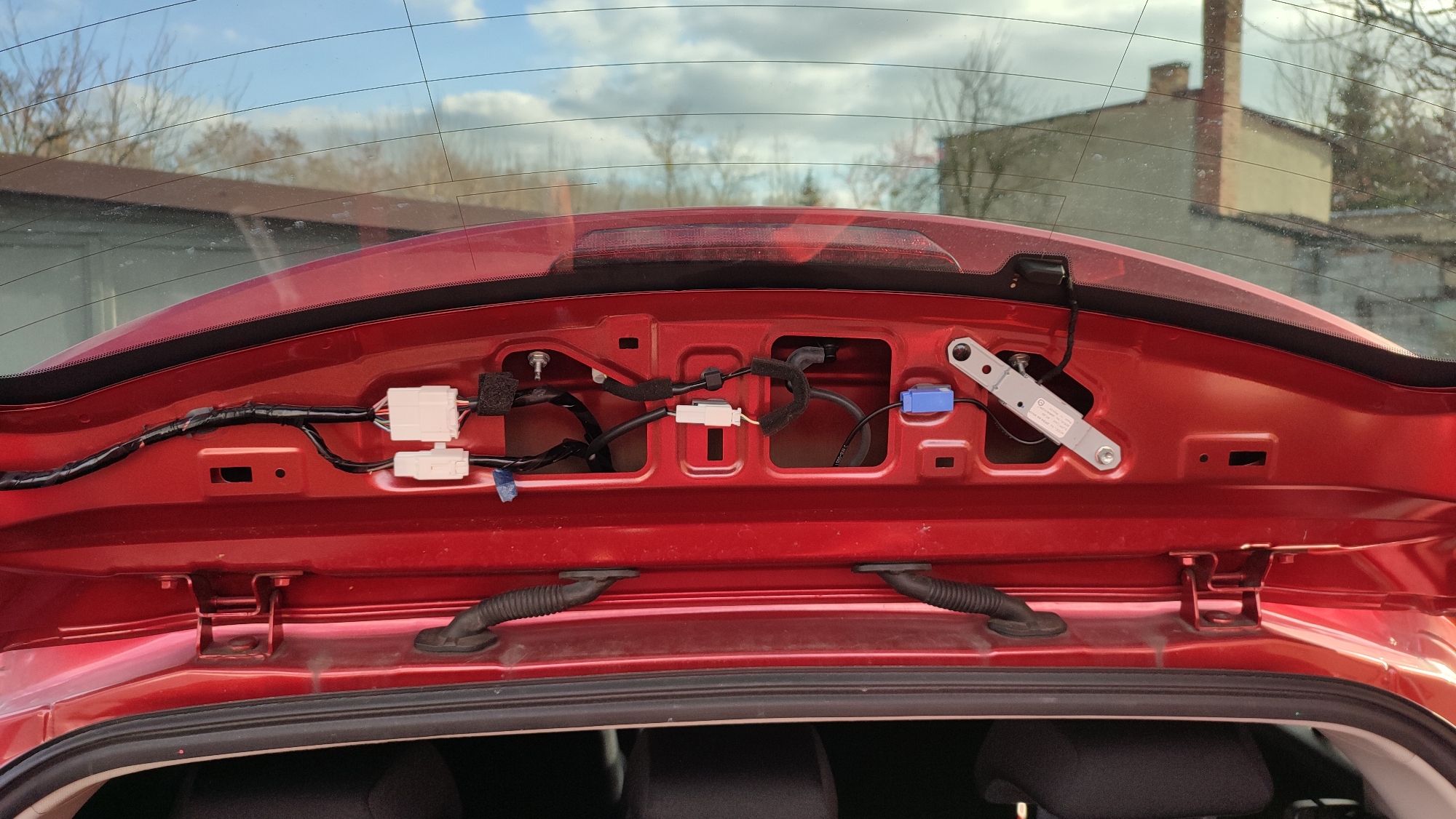 Po rozebraniu klapy pojawiły się te 2 tajemnicze wtyczki. Tak naiwnie myślałem, że jedna z nich jest tą magiczną wtyczką do kamerki i że wszystko będzie łatwe i przyjemne, ale niestety końcówka kamerki w żaden sposób tam nie pasuje.