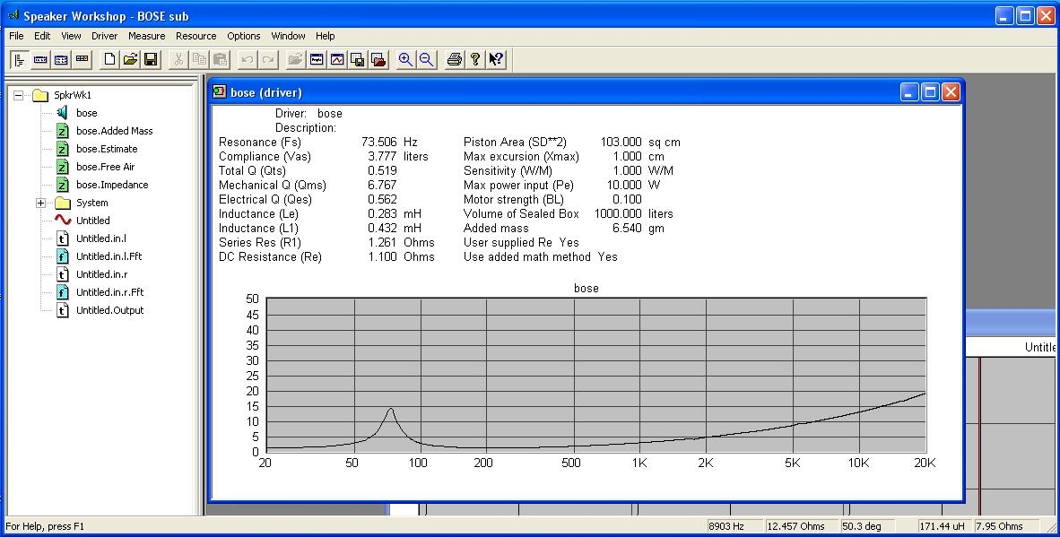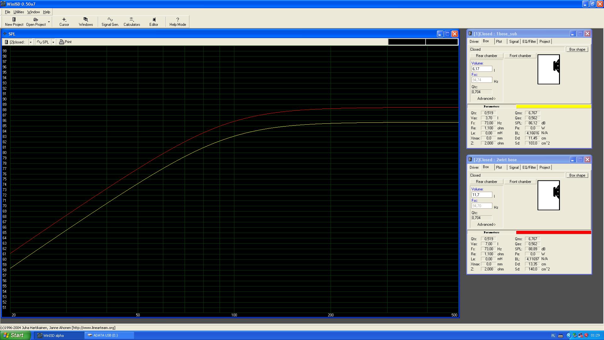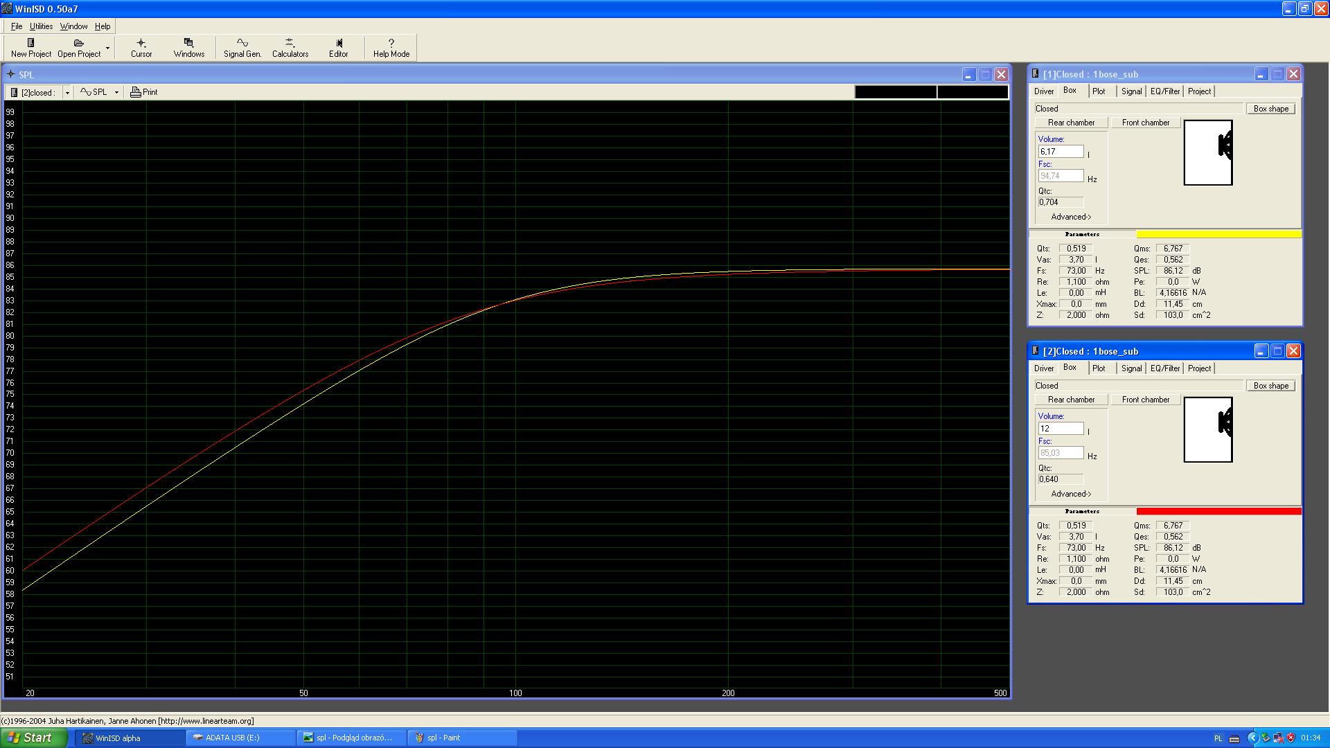 Tu nie tyle chodzi o zwiększenie Vas ale o obniżenie dobroci wypadkowej Qtc a jak widać na symulacji, zostało zmniejszone z 0,7 do 0,64 a tą różnicę można osiągnąć bez problemu odpowiednim wytłumieniem ( najlepiej wełna owcza ewentualnie mineralna). Należy również pamiętać ze symulacja nie uwzględnia wytłumienia i jest przeprowadzona dla surowej objętości. Niestety nie mam wełny pod ręką aby dokonać pomiarów mikrofonem. Jednak uważam że jest to niezbędne aby dopiąć system od tej strony.